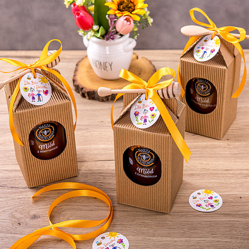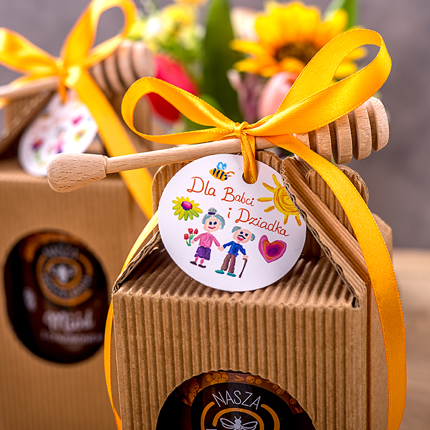 W tym eleganckim kartoniku z zawieszką okolicznościową znajdziesz idealny upominek dla Babci i Dziadka. Wybierz 1 smak miodu dla obdarowywanej osoby, niech poczuje się naprawdę słodko!