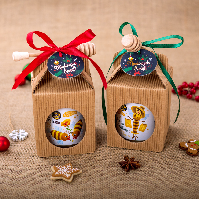 - Kartonik z 1 miodem wielokwiatowym 450g w etykiecie ze znakiem zodiaku