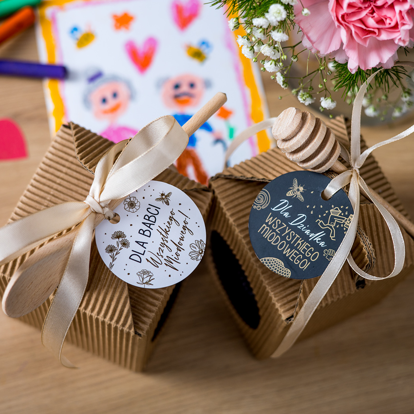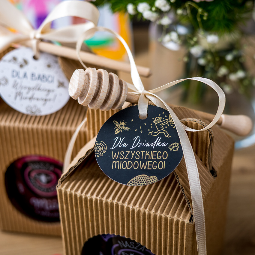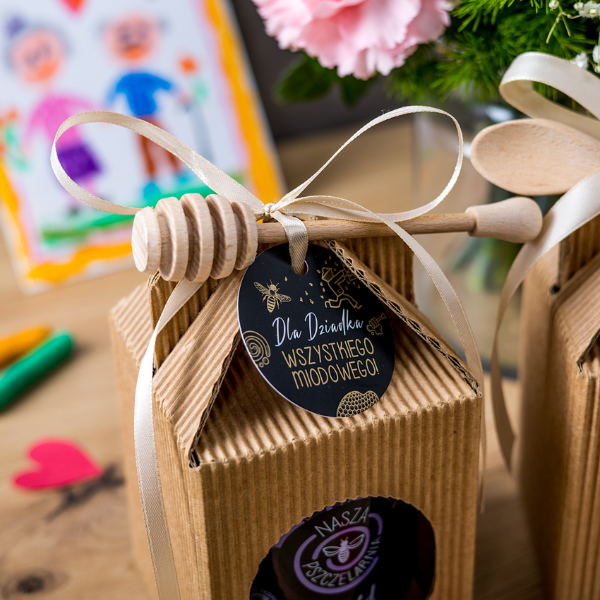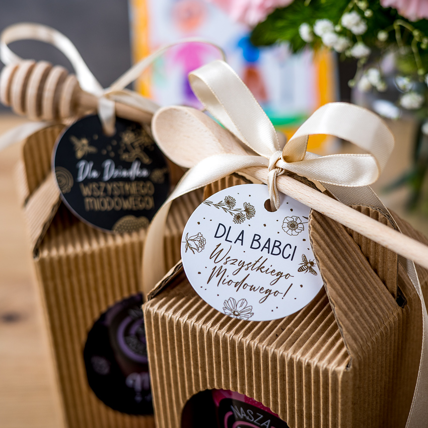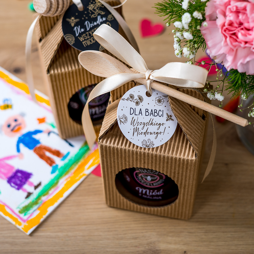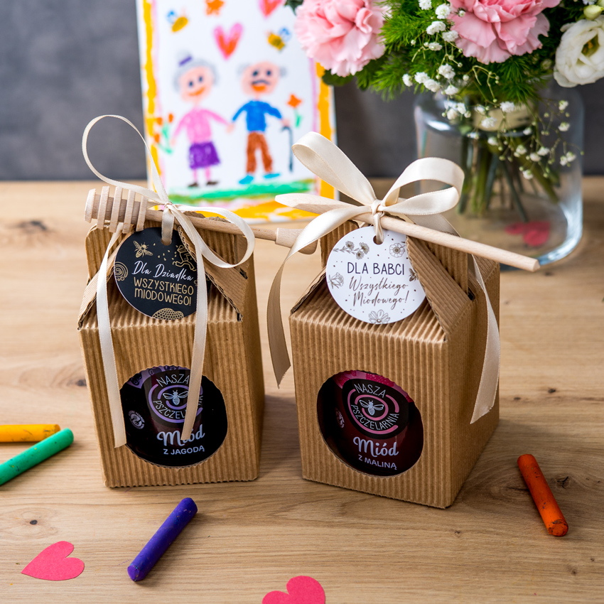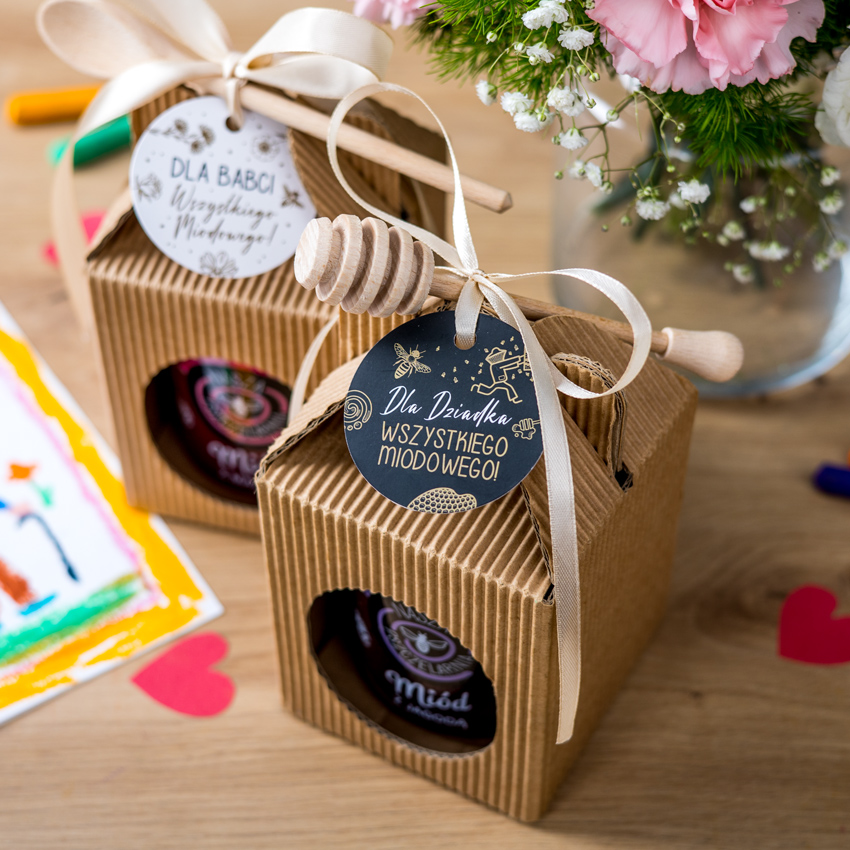 W tym eleganckim kartoniku z zawieszką okolicznościową znajdziesz idealny upominek dla Babci lub Dziadka. Wybierz 1 smak miodu dla obdarowywanej osoby, niech poczuje się naprawdę słodko!