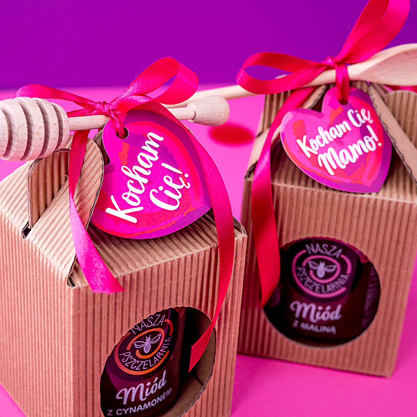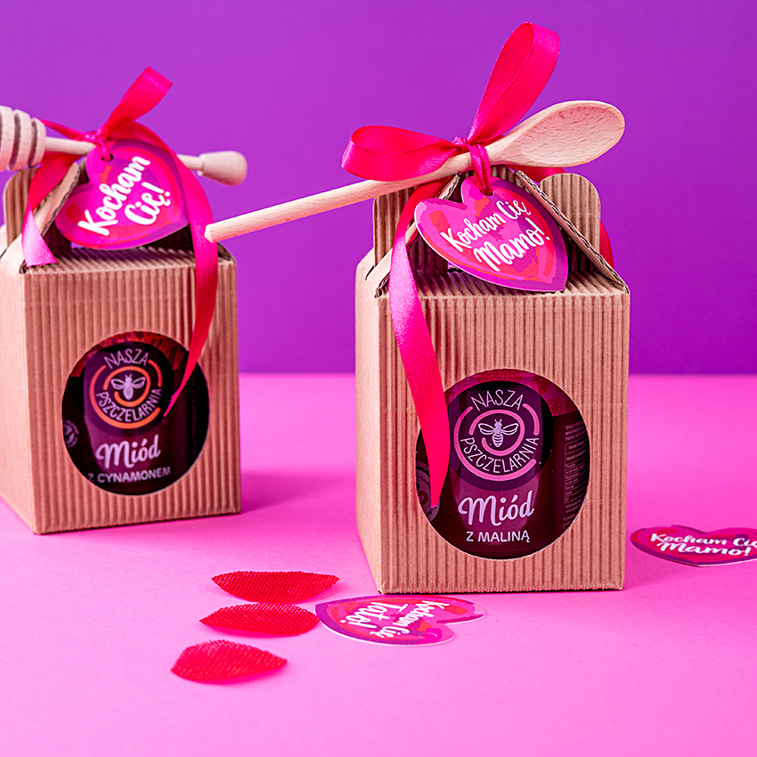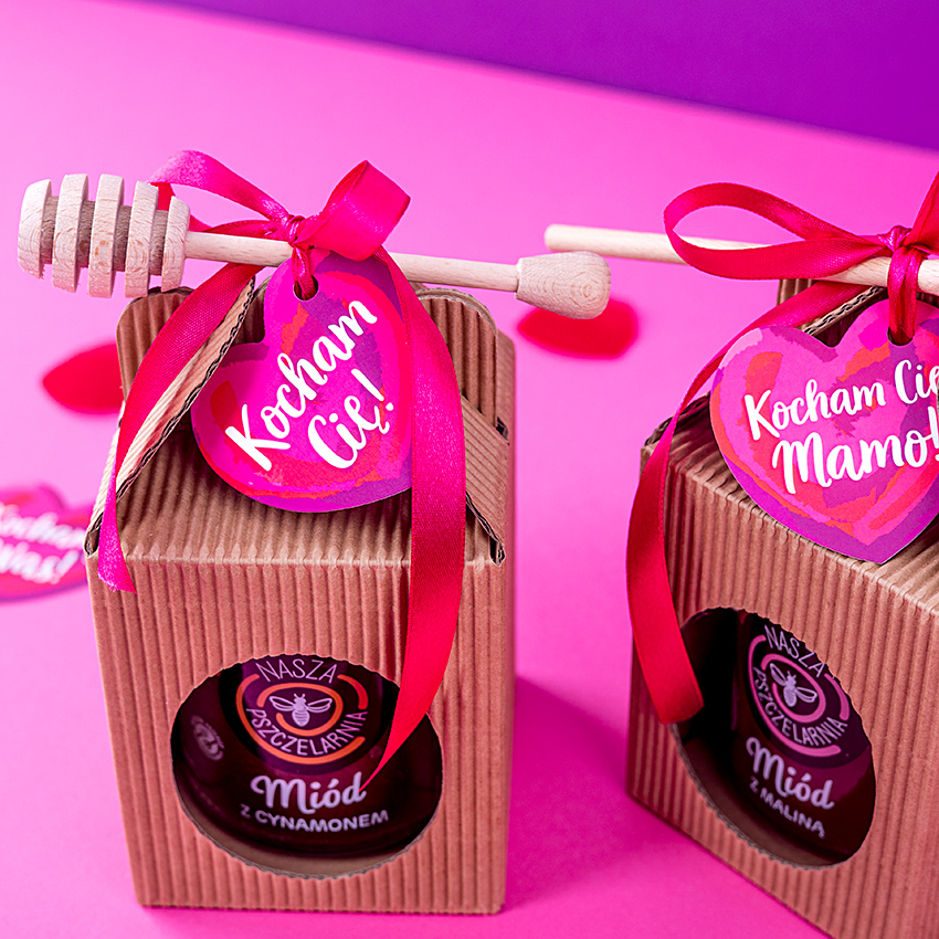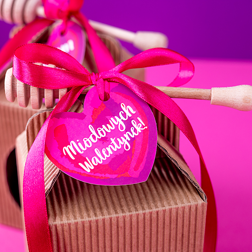 W tym eleganckim kartoniku z zawieszką okolicznościową znajdziesz idealny upominek na Walentynki. Wybierz 1 smak miodu dla obdarowywanej osoby, niech poczuje się naprawdę słodko!