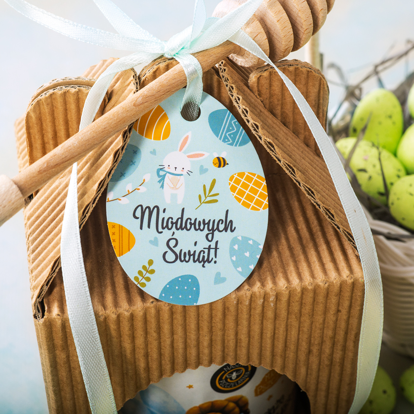 Zestaw z jednym miodem wielokwiatowym w eleganckim kartoniku z zawieszką. Pokaż swoim bliskim, że o nich pamiętasz!