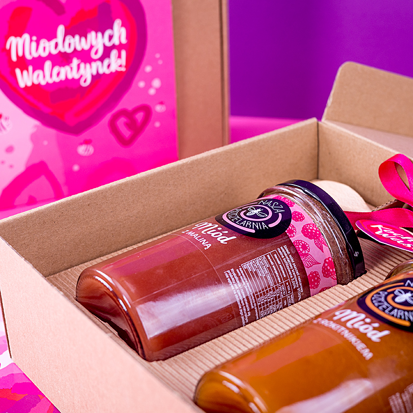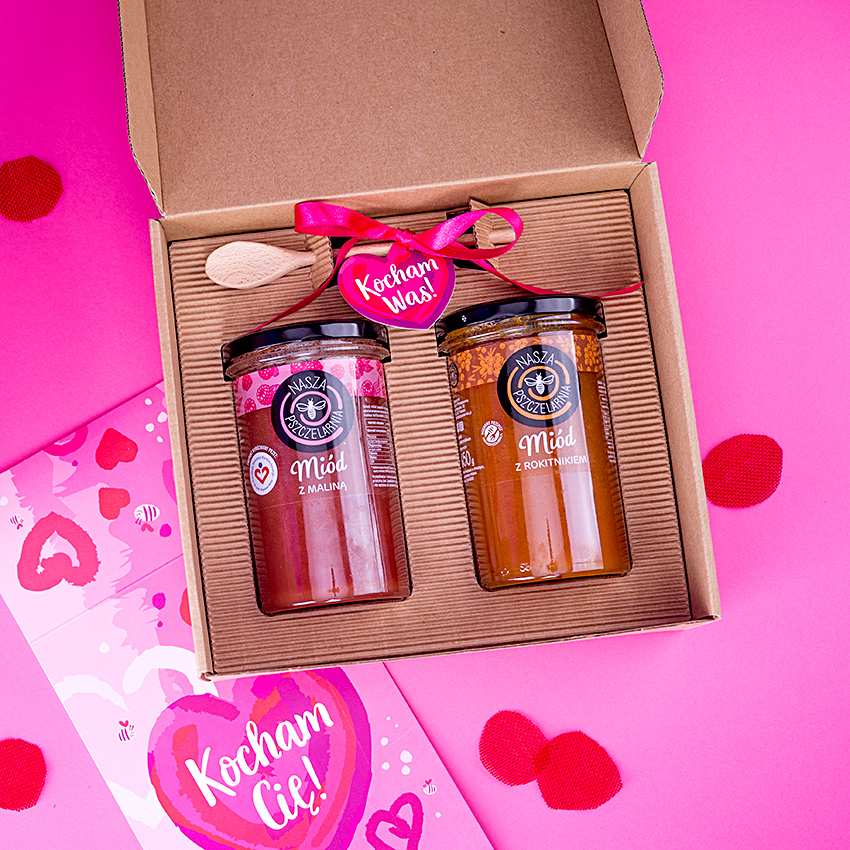 W tym eleganckim pudełku w opasce okolicznościowej znajdziesz idealny upominek na Walentynki. Wybierz 2 smaki miodu dla obdarowywanej osoby, niech poczuje się naprawdę słodko!