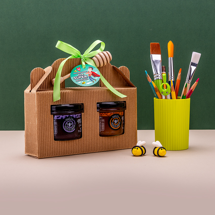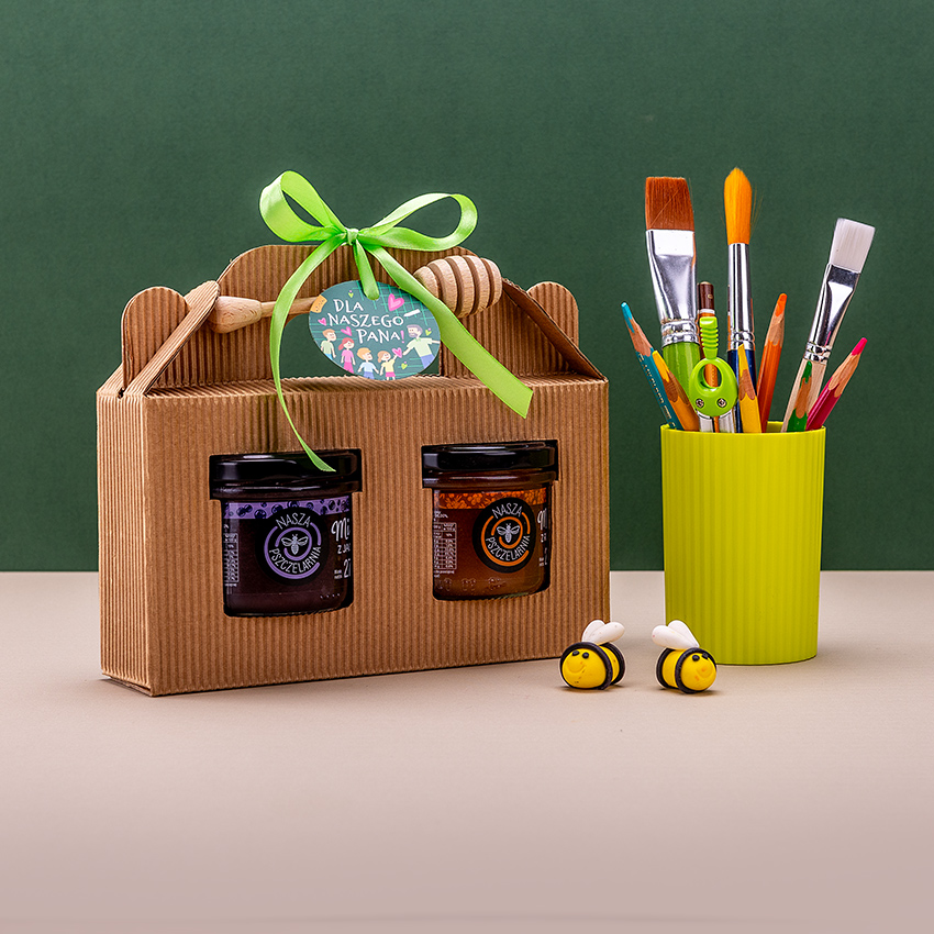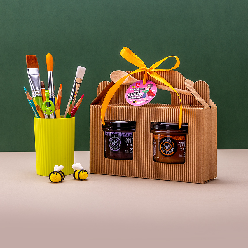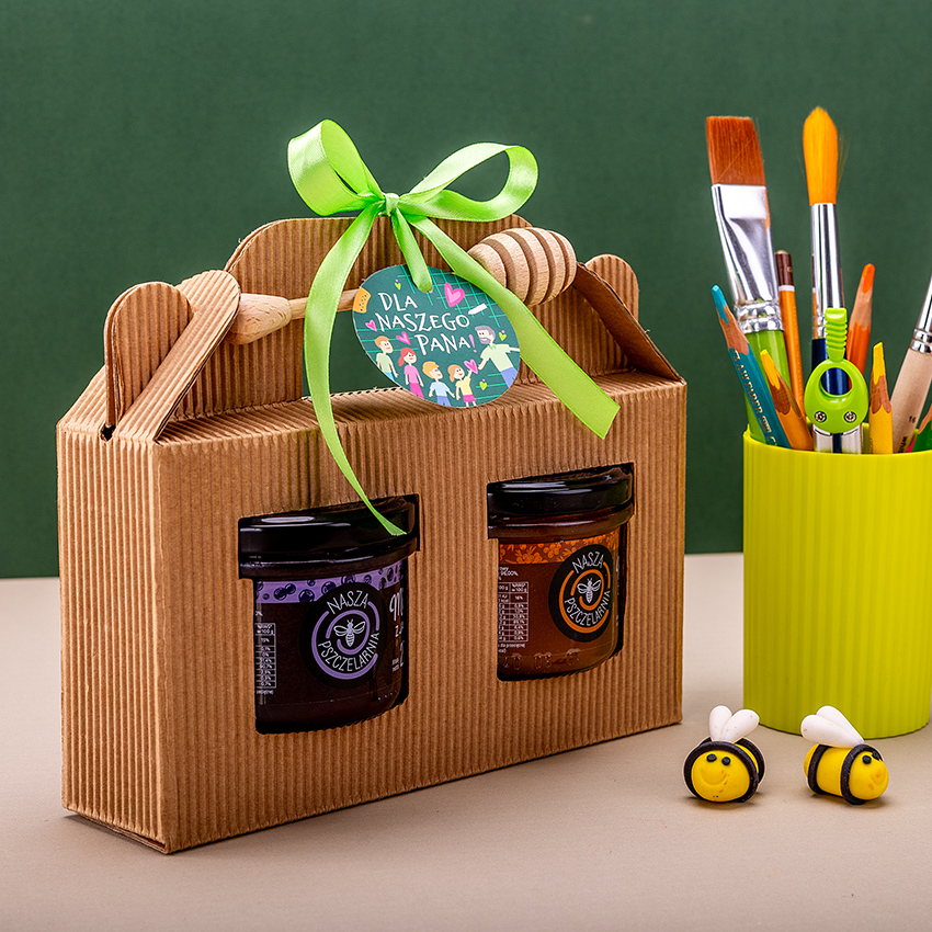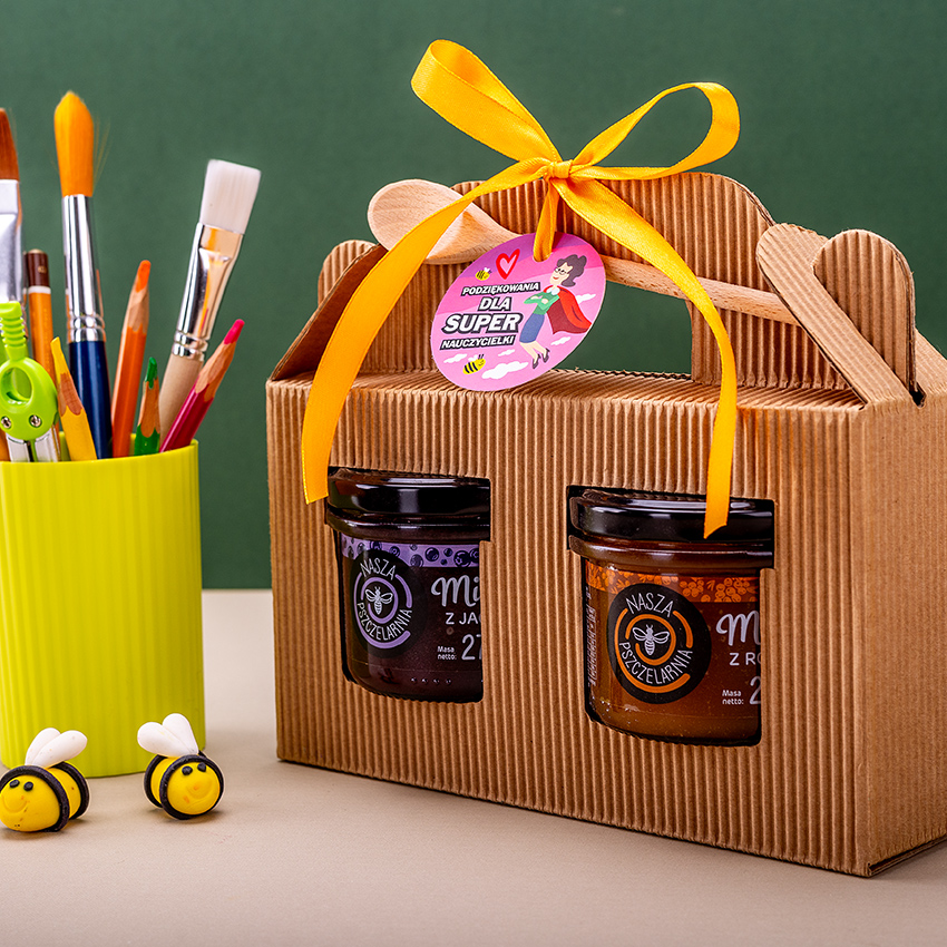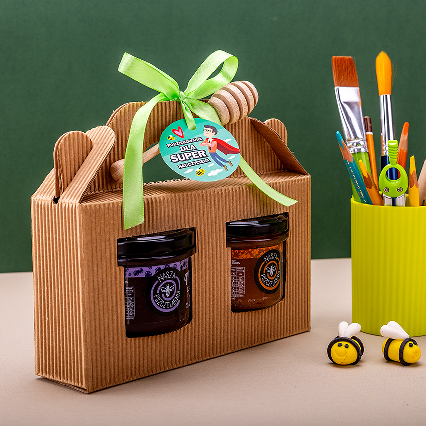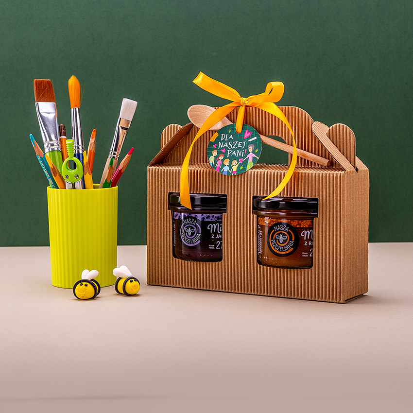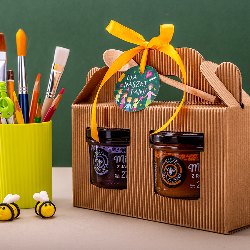 Strona główna / Sklep / Miody na prezent / Miody na Dzień Nauczyciela / 2 miodki w kartoniku na Dzień Nauczyciela