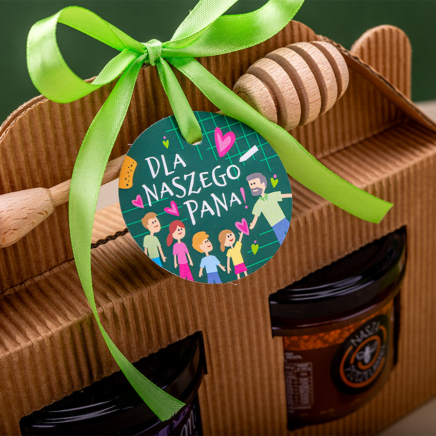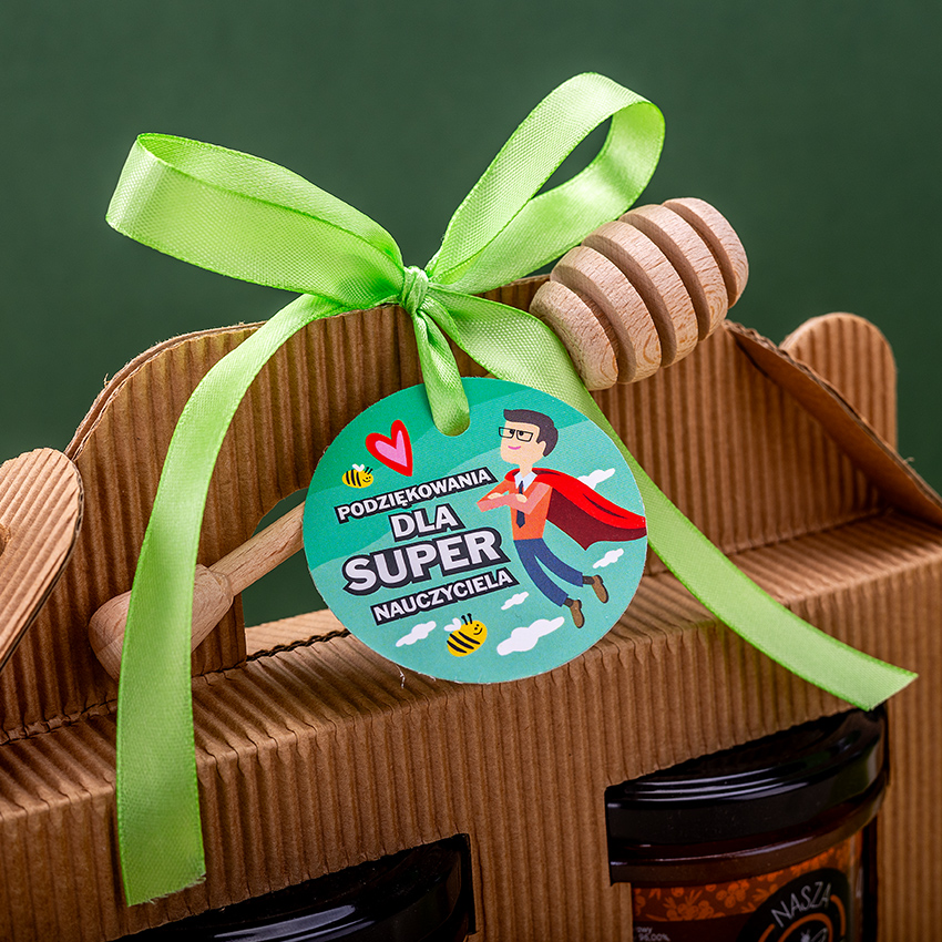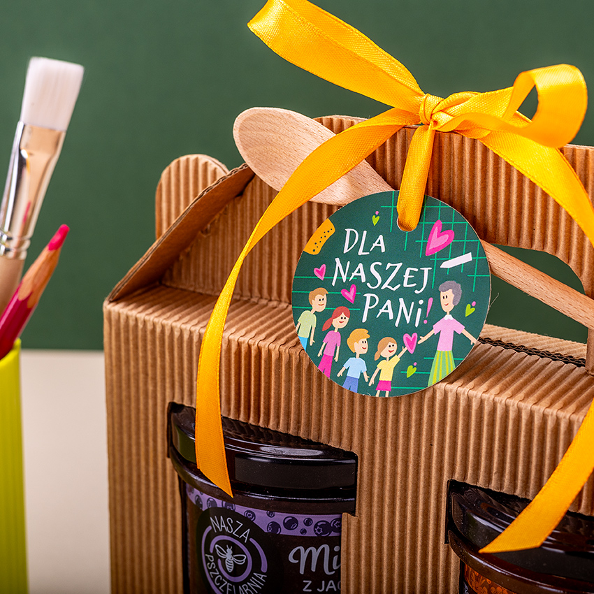W tym eleganckim kartoniku z zawieszką okolicznościową znajdziesz idealny upominek dla Pani nauczycielki lub Pana nauczyciela. Wybierz 2 smaki miodu dla obdarowywanej osoby, niech poczuje się naprawdę słodko!