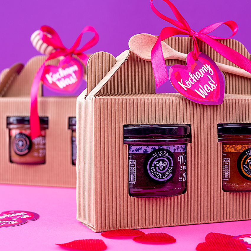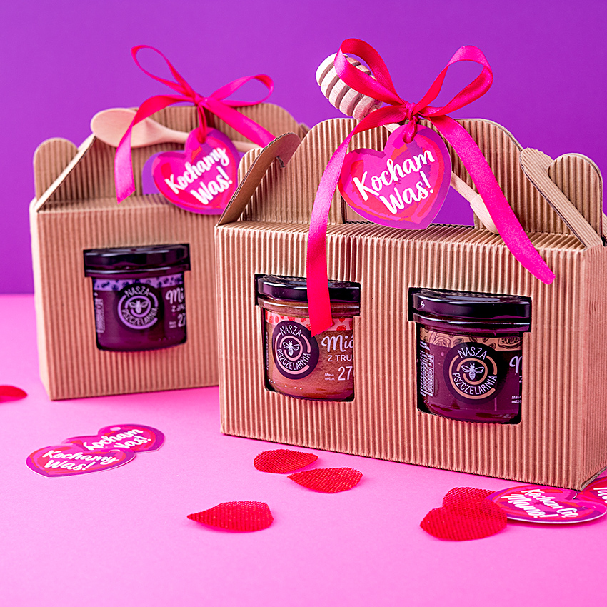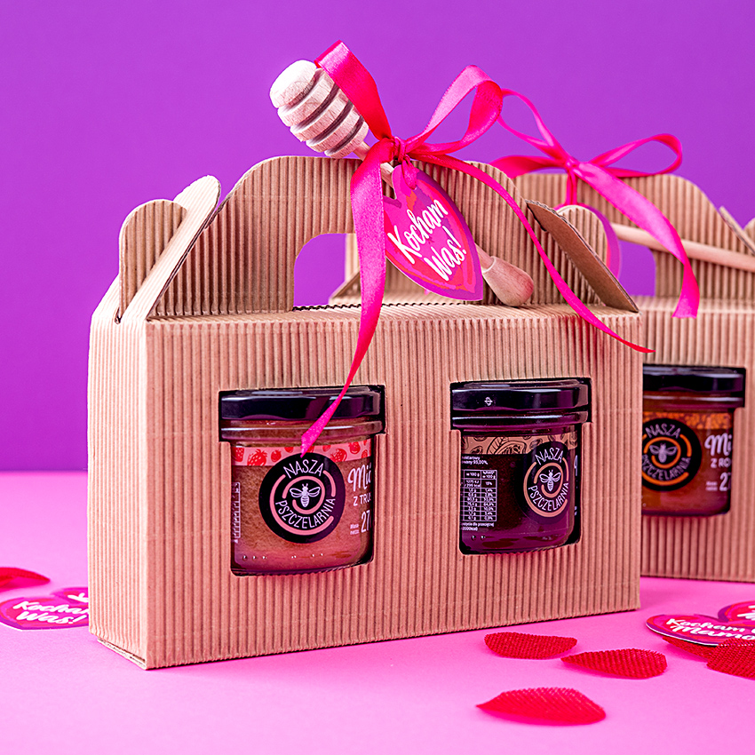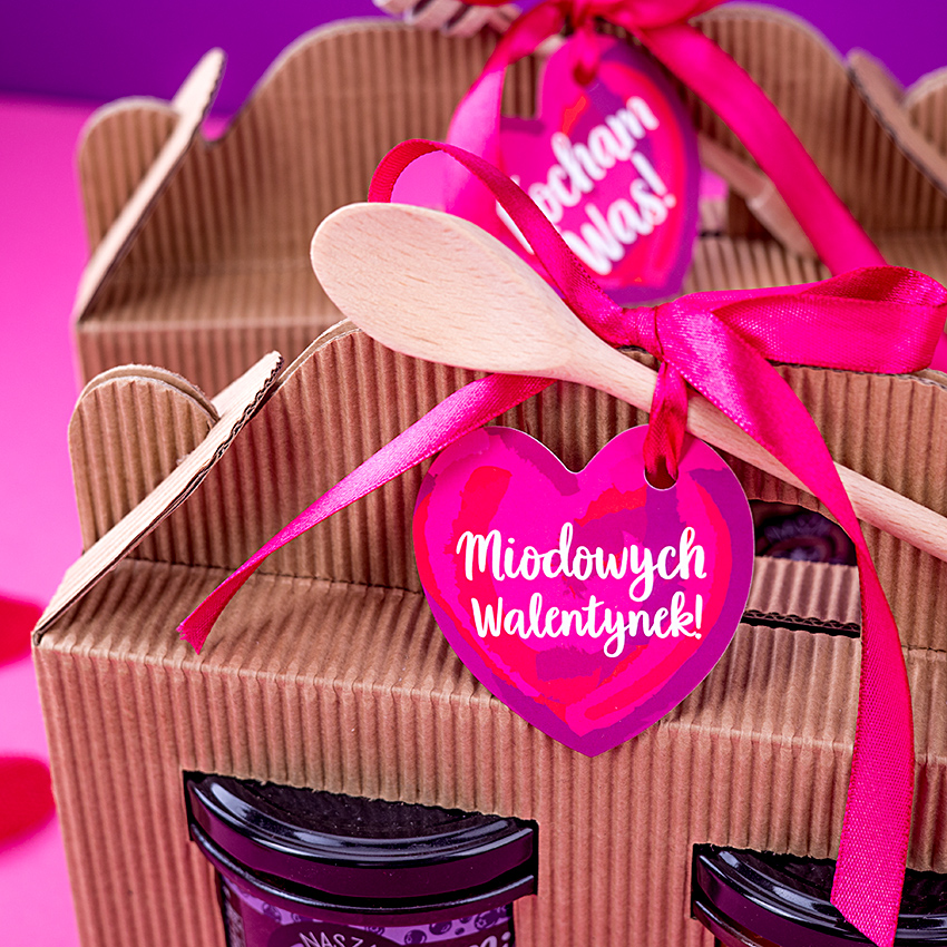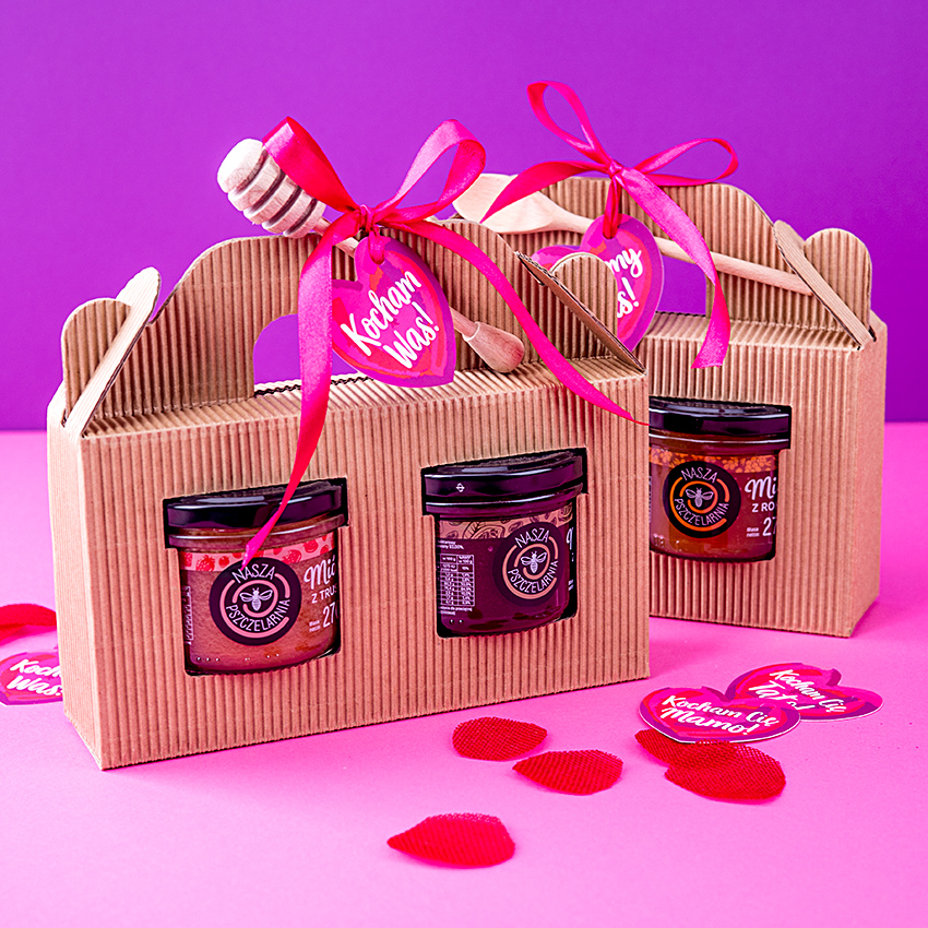 W tym eleganckim kartoniku z zawieszką okolicznościową znajdziesz idealny upominek na Walentynki. Wybierz 2 smaki miodu dla obdarowywanej osoby, niech poczuje się naprawdę słodko!