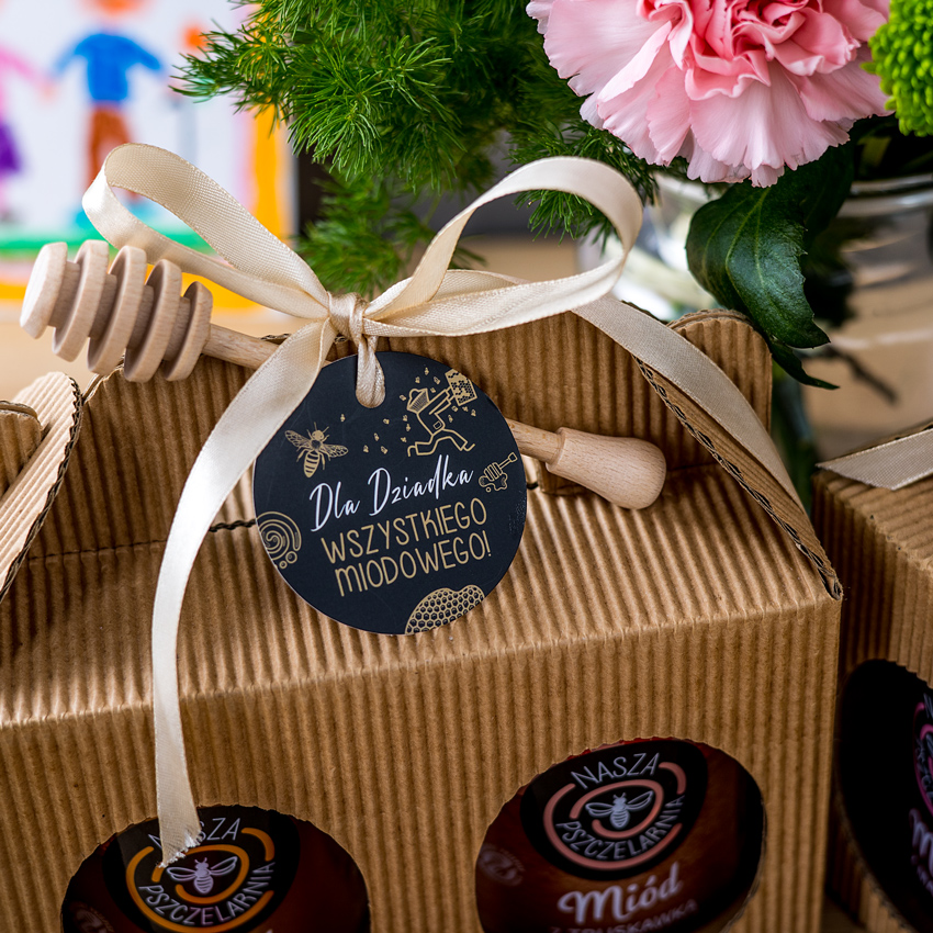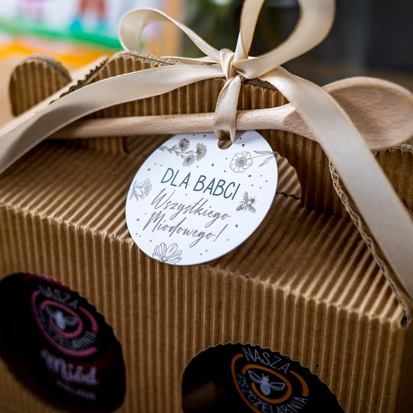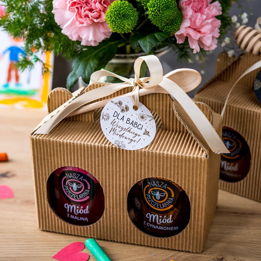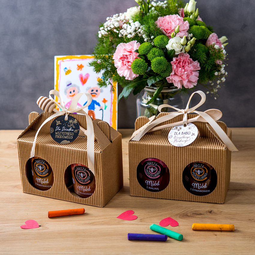 W tym eleganckim kartoniku z zawieszką okolicznościową znajdziesz idealny upominek dla Babci lub Dziadka. Wybierz 2 smaki miodu dla obdarowywanej osoby, niech poczuje się naprawdę słodko!