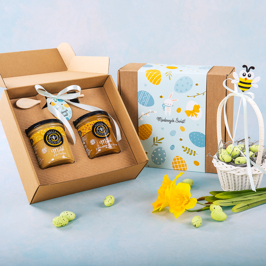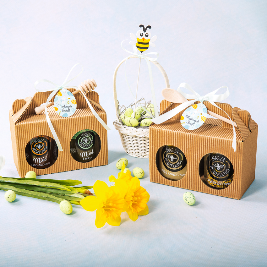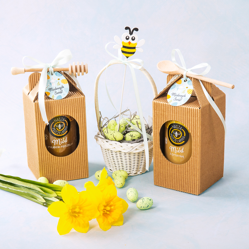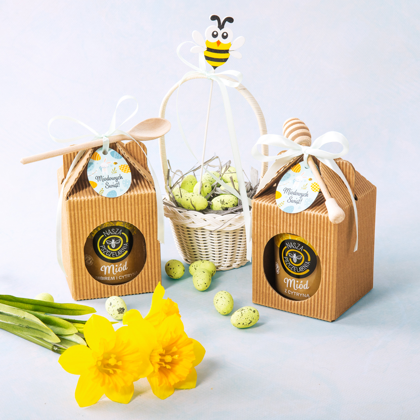 1 duży miód i 2 miodki w pudełku na Wielkanoc