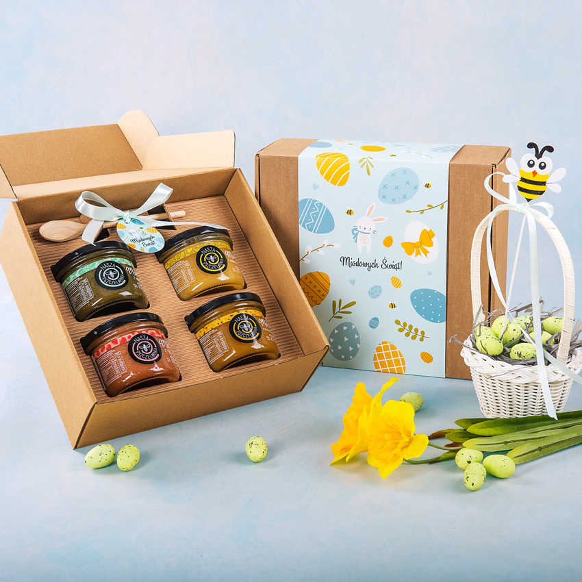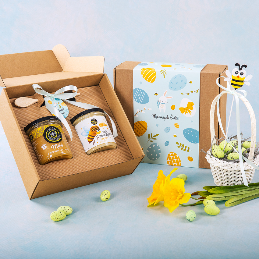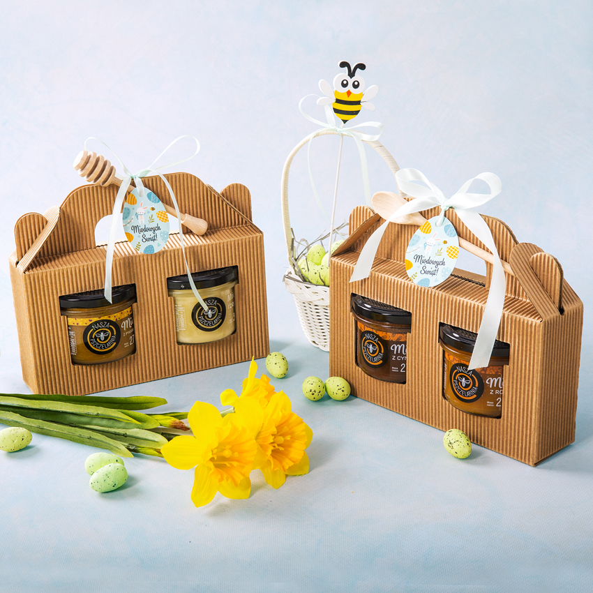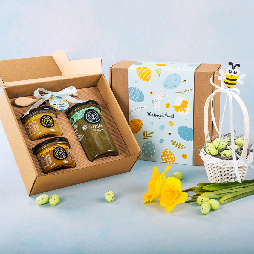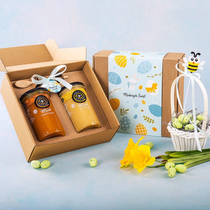 1 duży miód i 2 miodki w pudełku na Wielkanoc