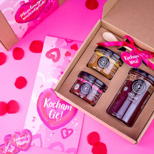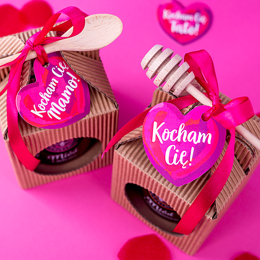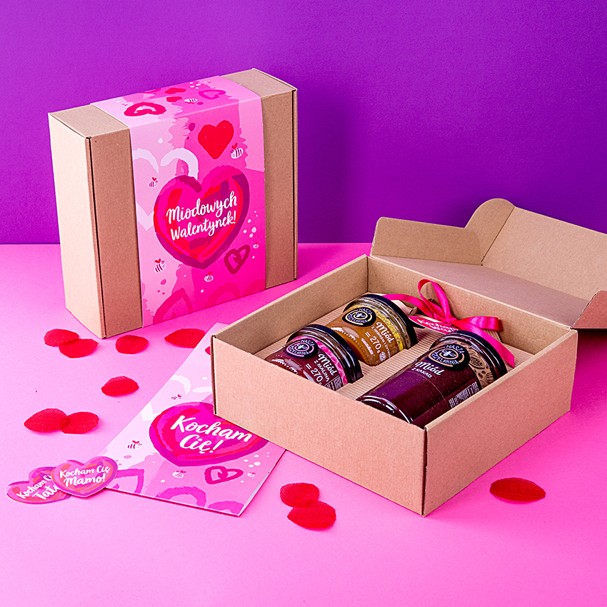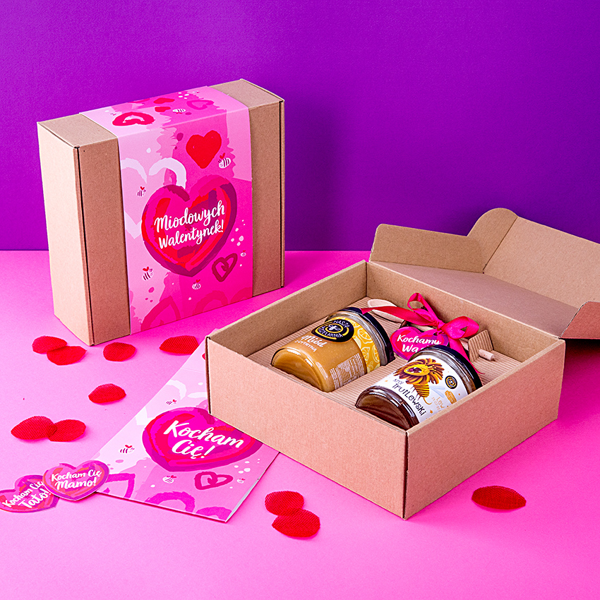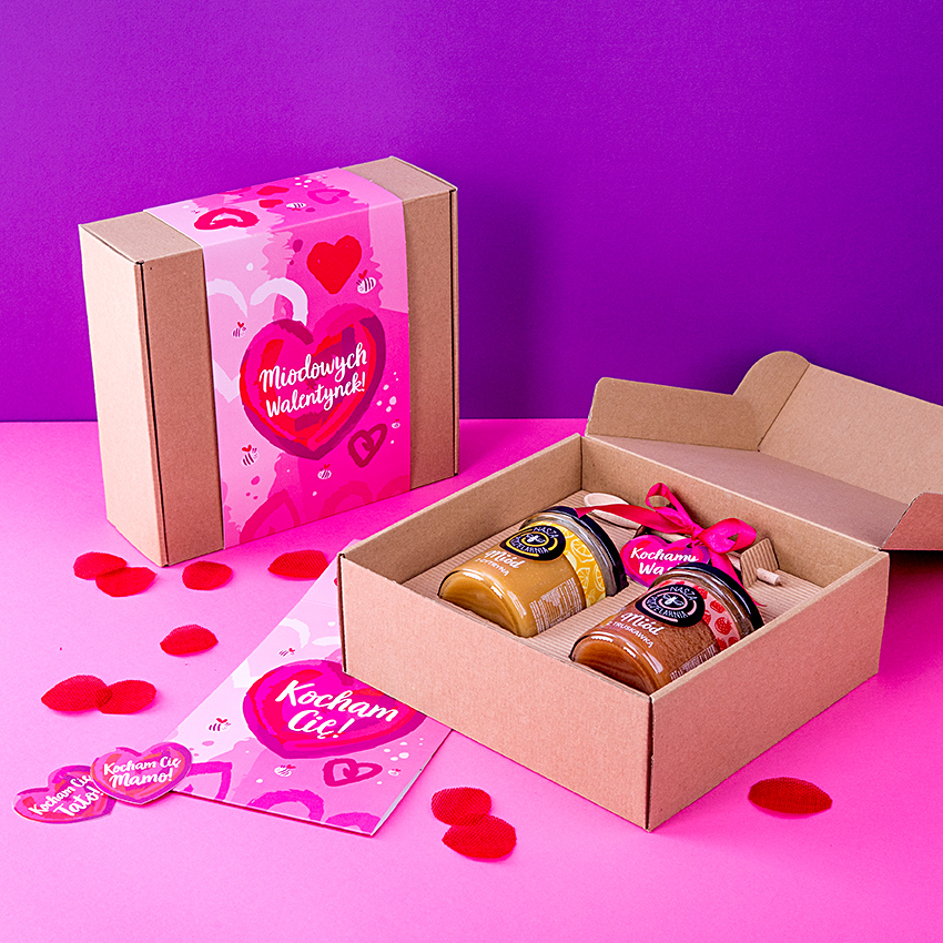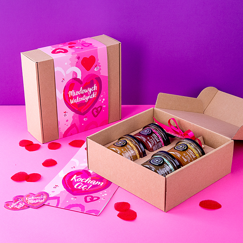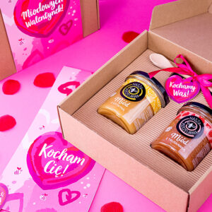 1 duży miód i 2 miodki w pudełku na Walentynki