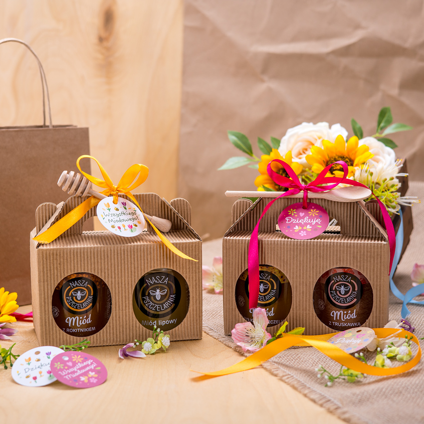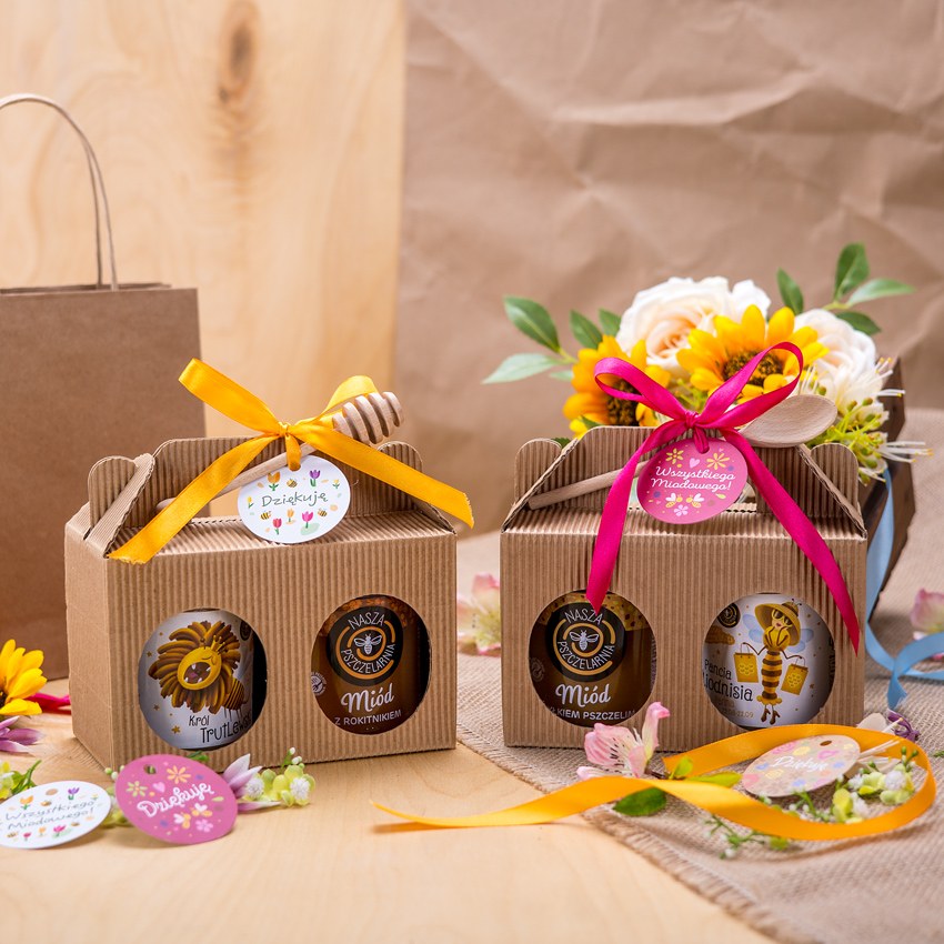 Personalizacja to jeden z najlepszych sposobów, aby pokazać, jak bardzo troszczymy się o drugą osobę. Wybierając miód na prezent, możecie Państwo dostosować kolor do gustu obdarowanej osoby lub jej znaku zodiaku. Ten szczegół przykuje uwagę i uczyni upominek osobistym, podkreślając unikalność wyboru. Bez względu na to, czy wybierzecie złoty, zielony, czerwony czy błękitny – każdy kolor ma swoje znaczenie i dodaje emocji do upominku. Wkomponowanie znaku zodiaku jeszcze bardziej personalizuje prezent, wprowadzając do niego odrobinę magii i tajemniczości. Taka kompozycja pudełka sprawia, że “Miody na Dzień Kobiet” stają się prezentem, który zaskakuje swoją oryginalnością i troską, jaką wykazaliście Państwo dokonując wyboru.