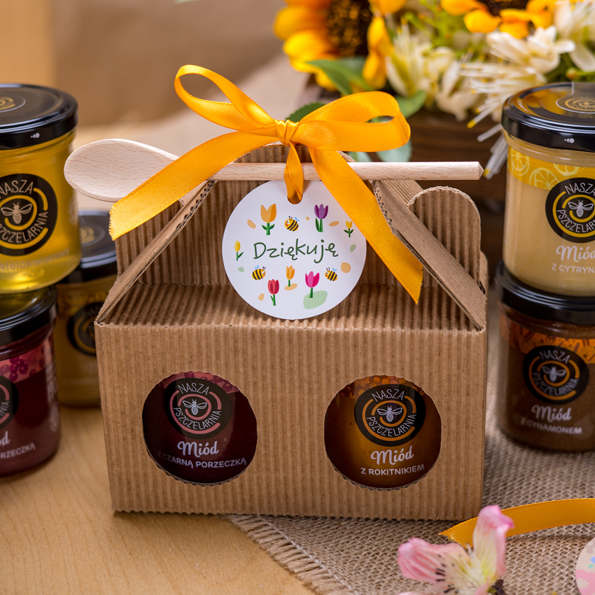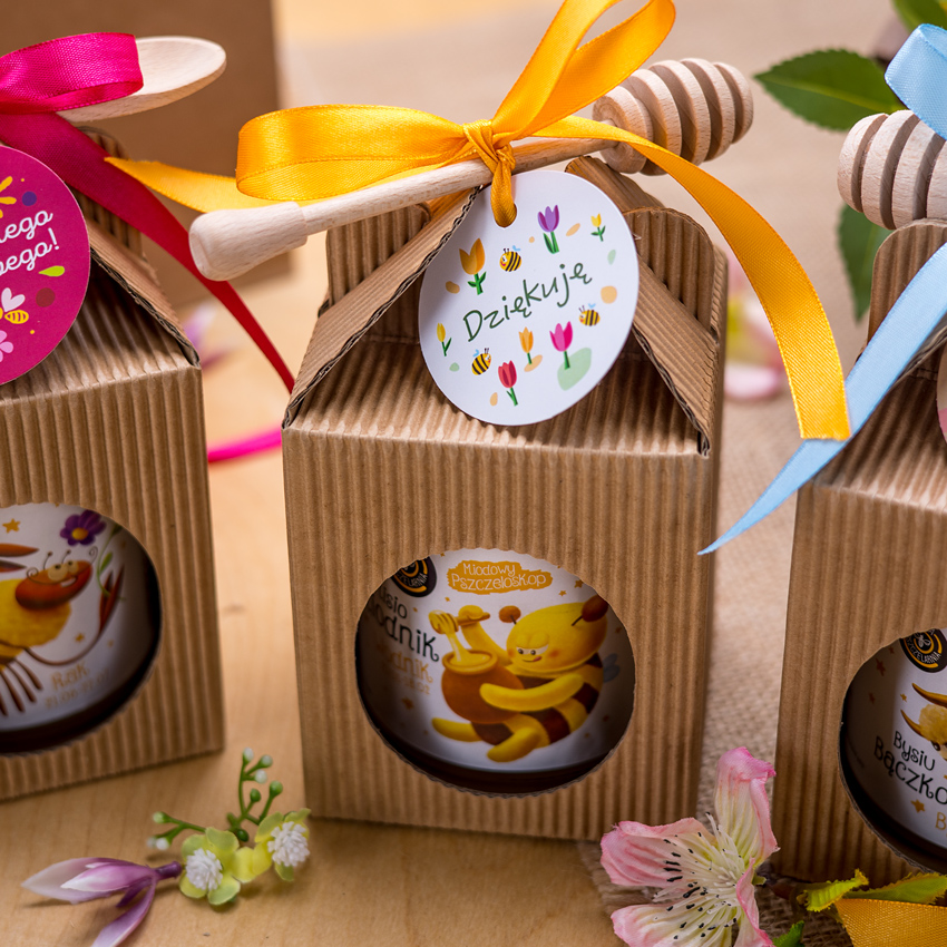 Personalizacja to jeden z najlepszych sposobów, aby pokazać, jak bardzo troszczymy się o drugą osobę. Wybierając miód na prezent, możecie Państwo dostosować kolor do gustu obdarowanej osoby lub jej znaku zodiaku. Ten szczegół przykuje uwagę i uczyni upominek osobistym, podkreślając unikalność wyboru. Bez względu na to, czy wybierzecie złoty, zielony, czerwony czy błękitny – każdy kolor ma swoje znaczenie i dodaje emocji do upominku. Wkomponowanie znaku zodiaku jeszcze bardziej personalizuje prezent, wprowadzając do niego odrobinę magii i tajemniczości. Taka kompozycja pudełka sprawia, że “Miody na Dzień Kobiet” stają się prezentem, który zaskakuje swoją oryginalnością i troską, jaką wykazaliście Państwo dokonując wyboru.