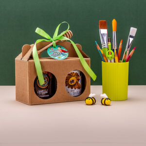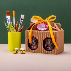 - Drewniana łyżeczka do miodu: każdy zestaw zawiera elegancką drewnianą łyżeczkę do miodu. To nie tylko praktyczny element, ale również dodatek, który podnosi wartość całego prezentu. Drewniana łyżeczka dodaje natychmiastowej wyjątkowości i jest pięknym dopełnieniem do słoika miodu.