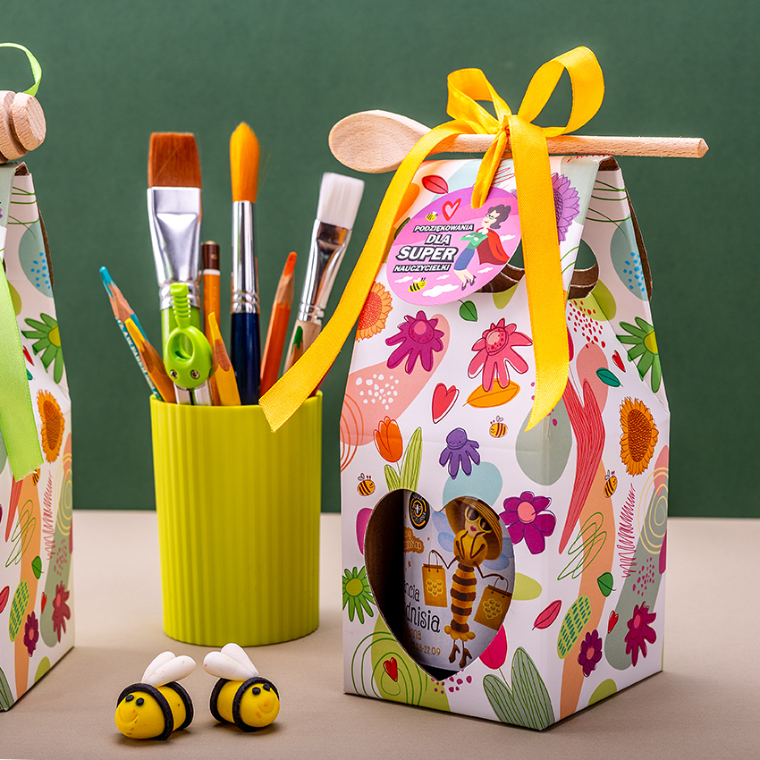 - Miód wielokwiatowy z wybranym znakiem zodiaku: nasz miód wielokwiatowy to prawdziwa uczta dla kubków smakowych, zebrane w jednym słoiku. Co więcej, etykieta z wybranym znakiem zodiaku dodaje upominkowi unikalności i osobistego charakteru. To idealny sposób, by pokazać nauczycielom, że warto było zwrócić uwagę na detale.