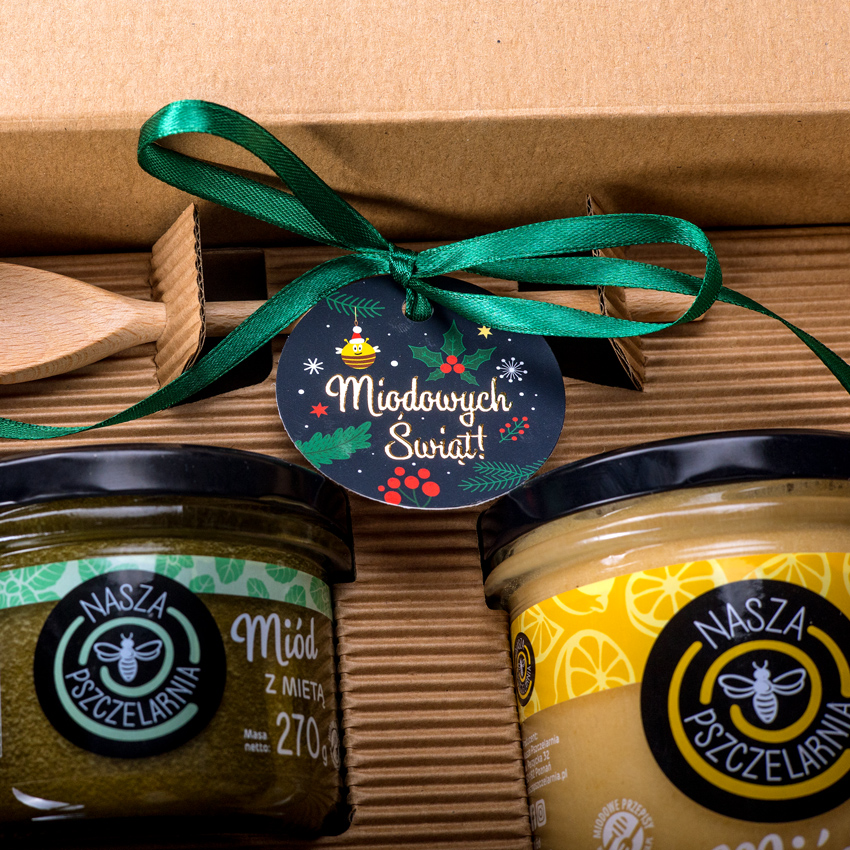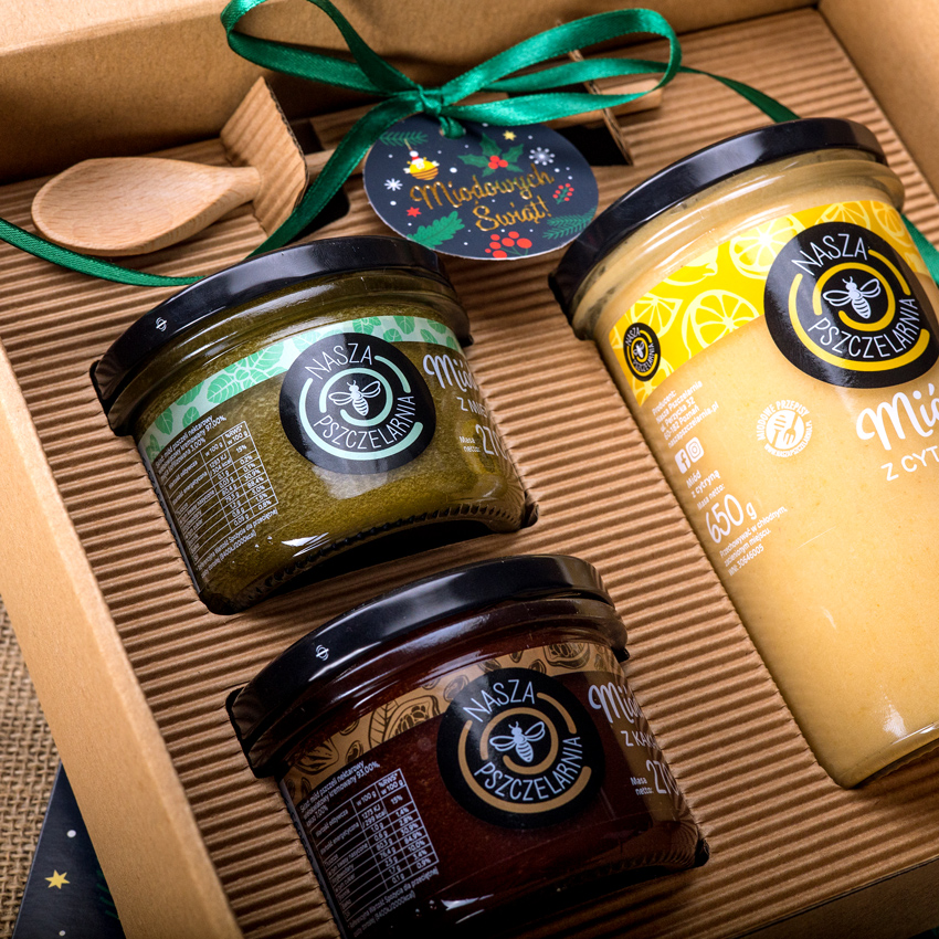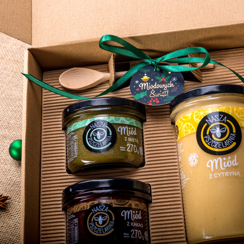 W tym eleganckim pudełku w opasce okolicznościowej znajdziesz idealny upominek na zbliżające się święta Bożego Narodzenia. Wybierz 3 smaki miodu dla obdarowywanej osoby, niech poczuje się naprawdę słodko!