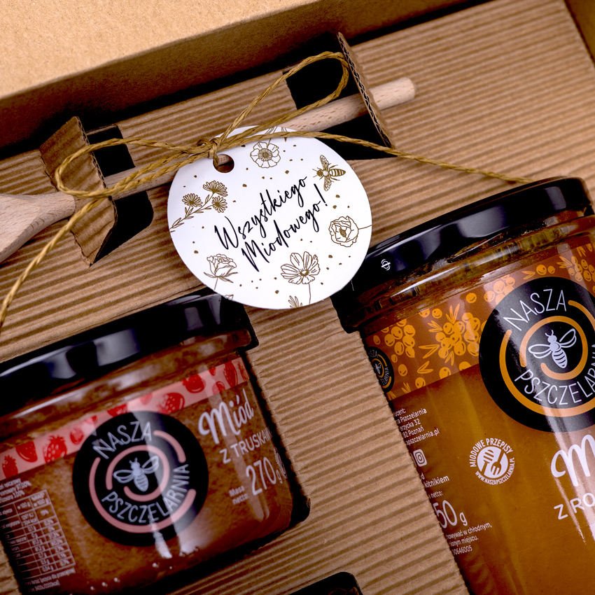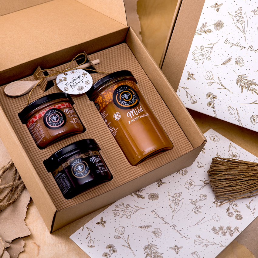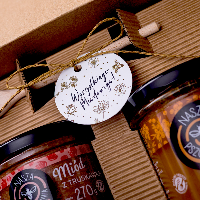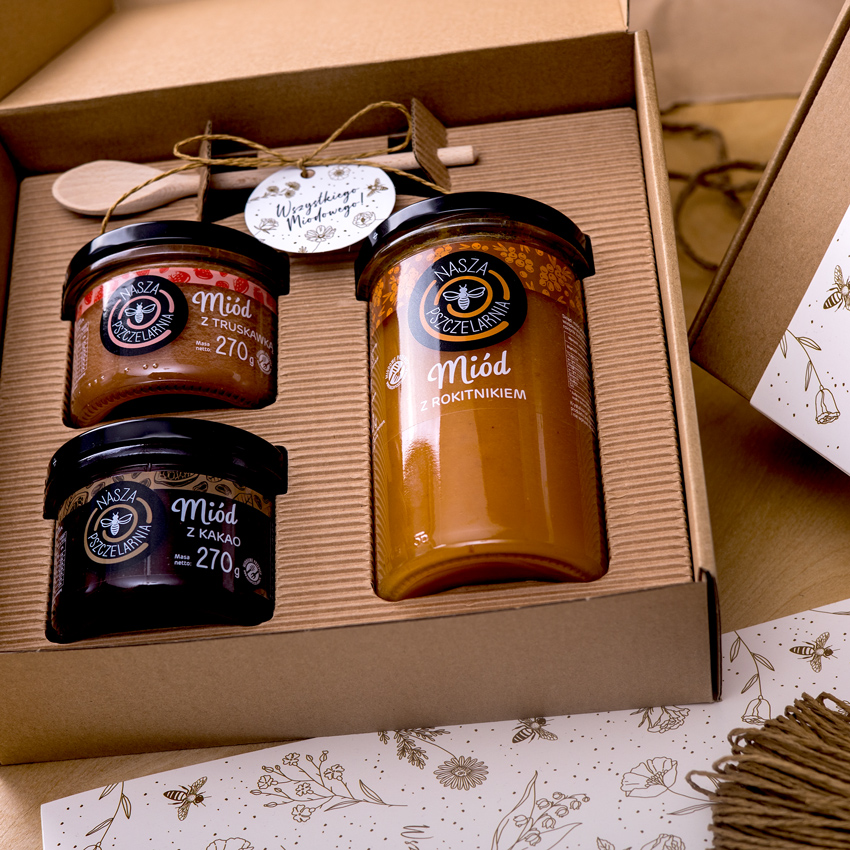 W tym eleganckim pudełku w opasce okolicznościowej znajdziesz idealny upominek na każdą okazję. Wybierz jedną z pięciu zawieszek. Skompletuj 3 smaki miodu dla obdarowywanej osoby, niech poczuje się naprawdę słodko!