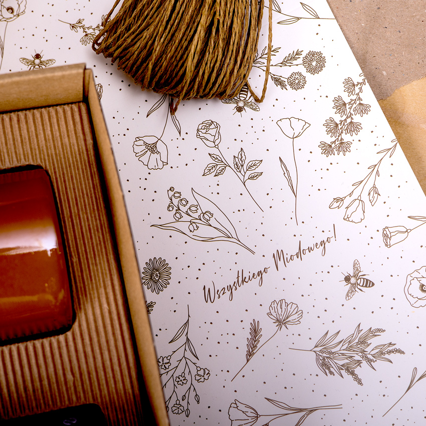 • Pudełko kartonowe na wybrany 1 miód 650g i 2 wybrane miody 300g/270g