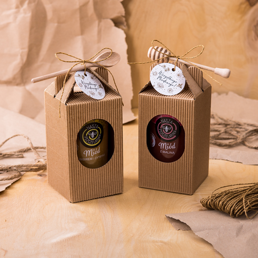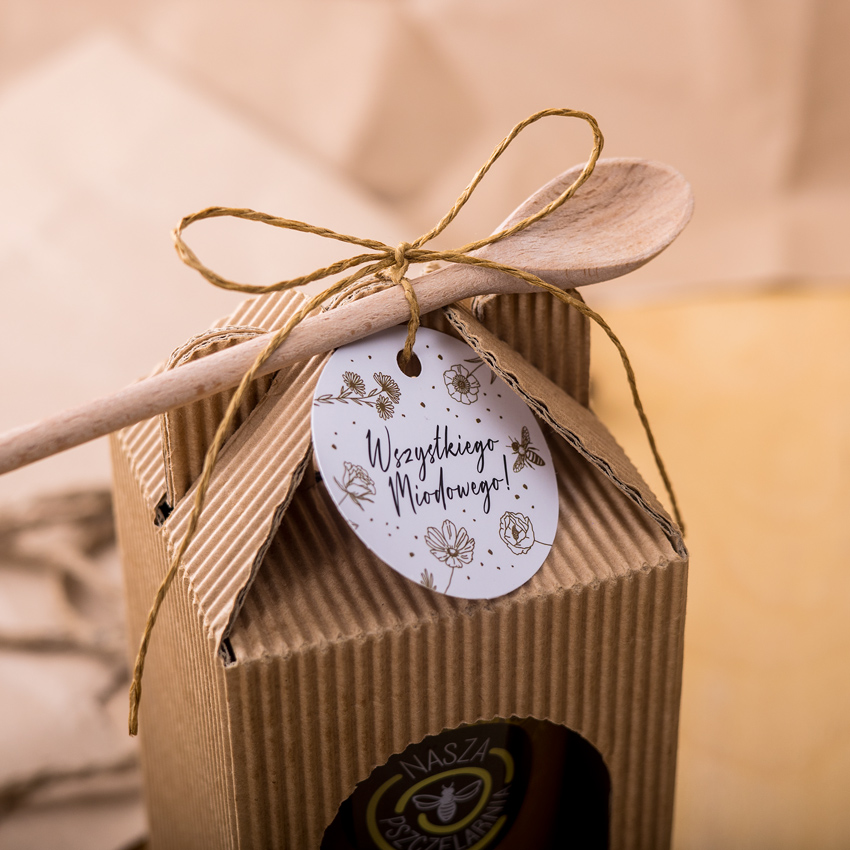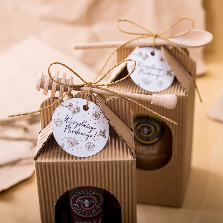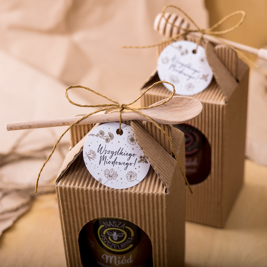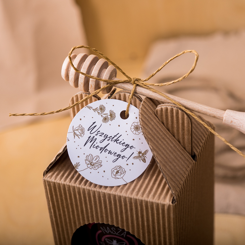 W tym eleganckim kartoniku z zawieszką okolicznościową znajdziesz idealny upominek na każdą okazję. Wybierz 1 smak miodu dla obdarowywanej osoby, niech poczuje się naprawdę słodko!