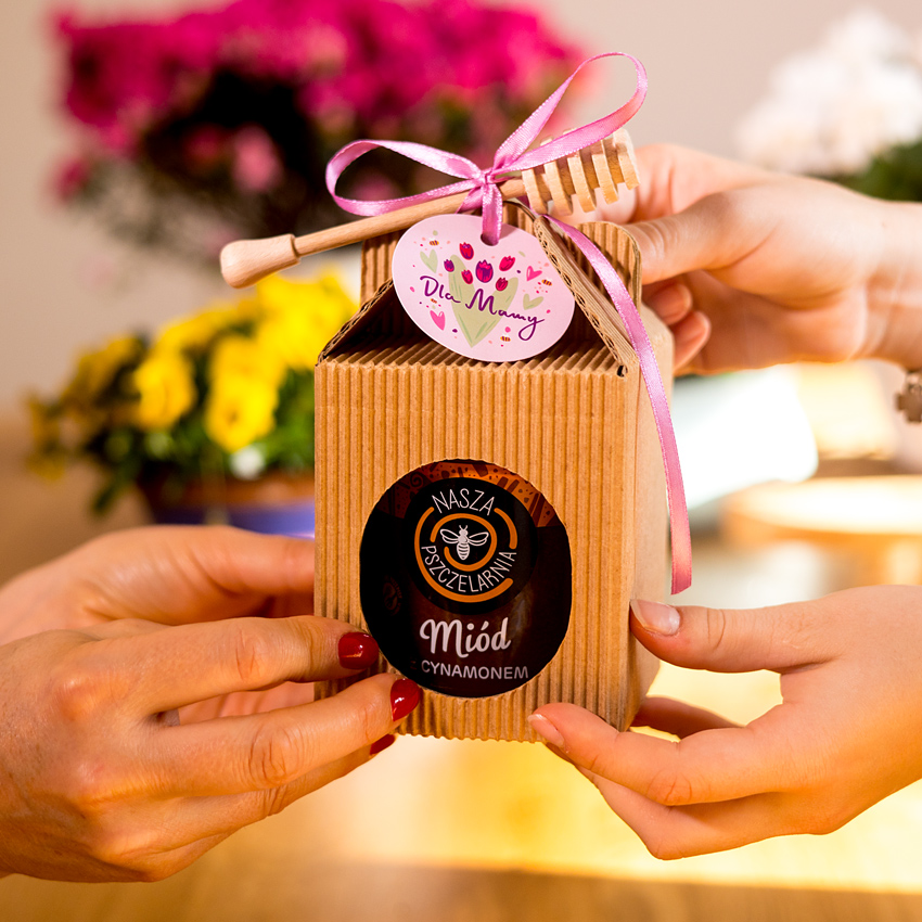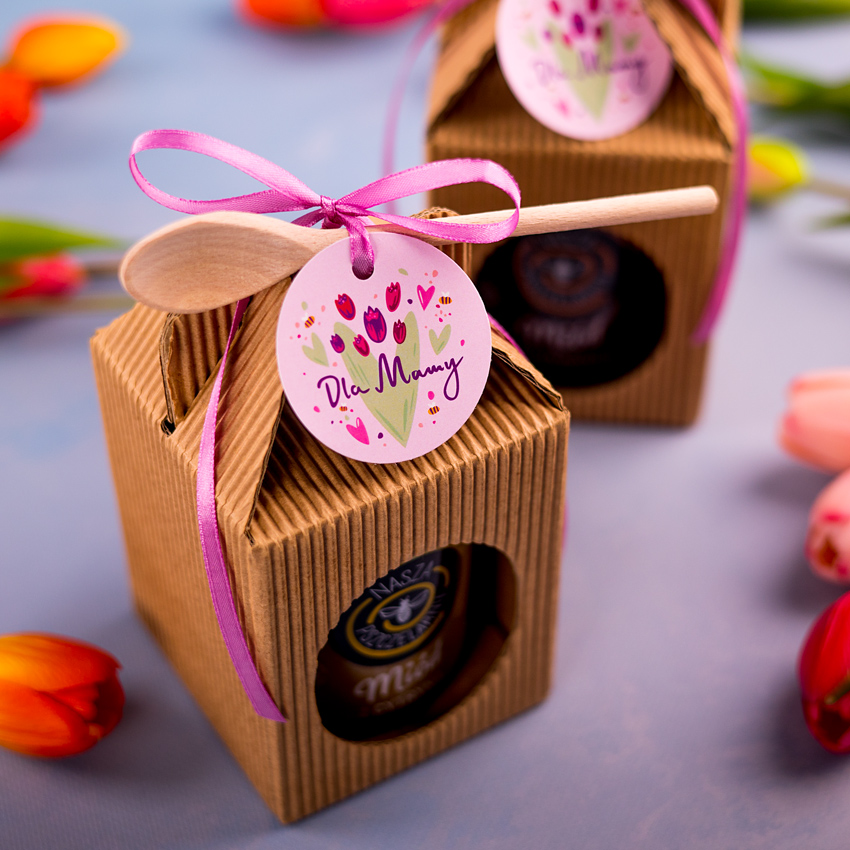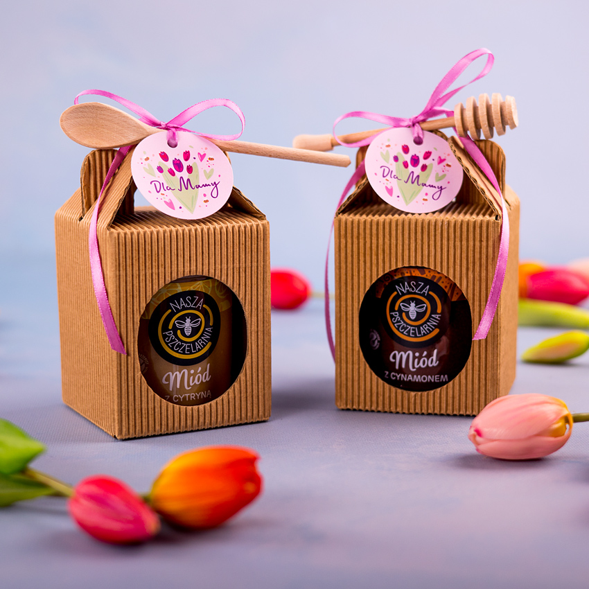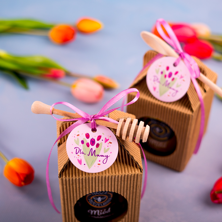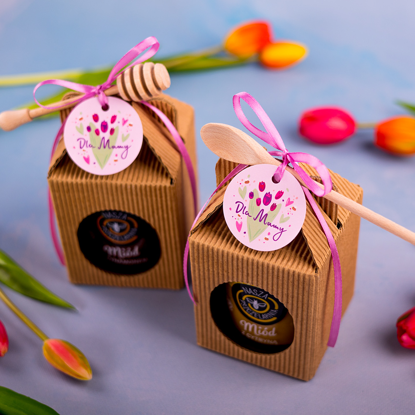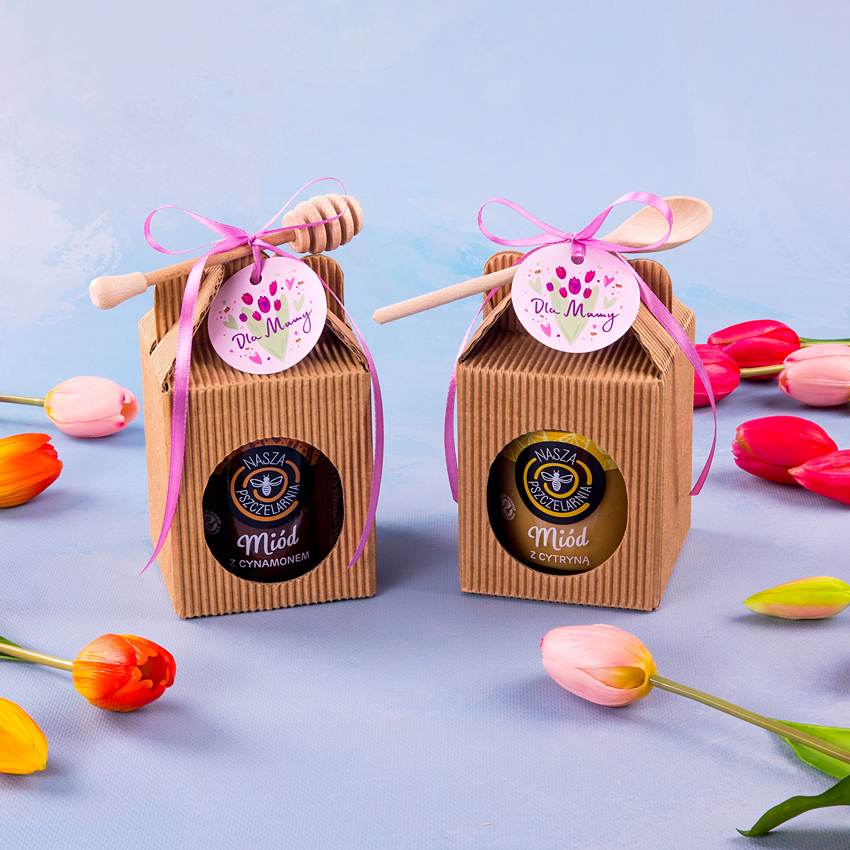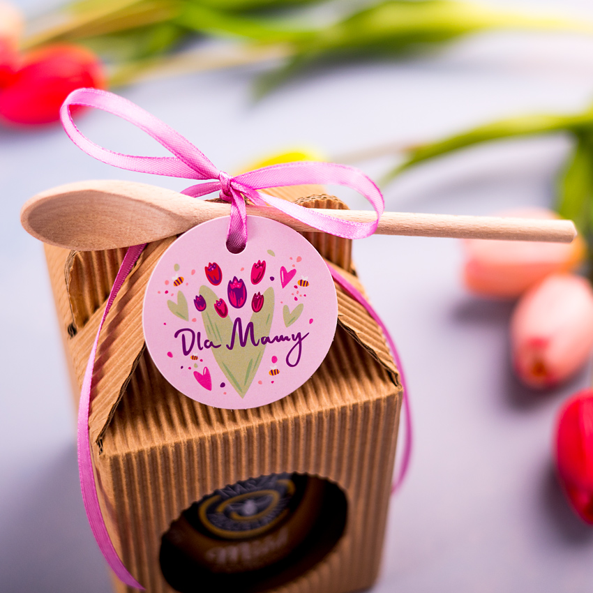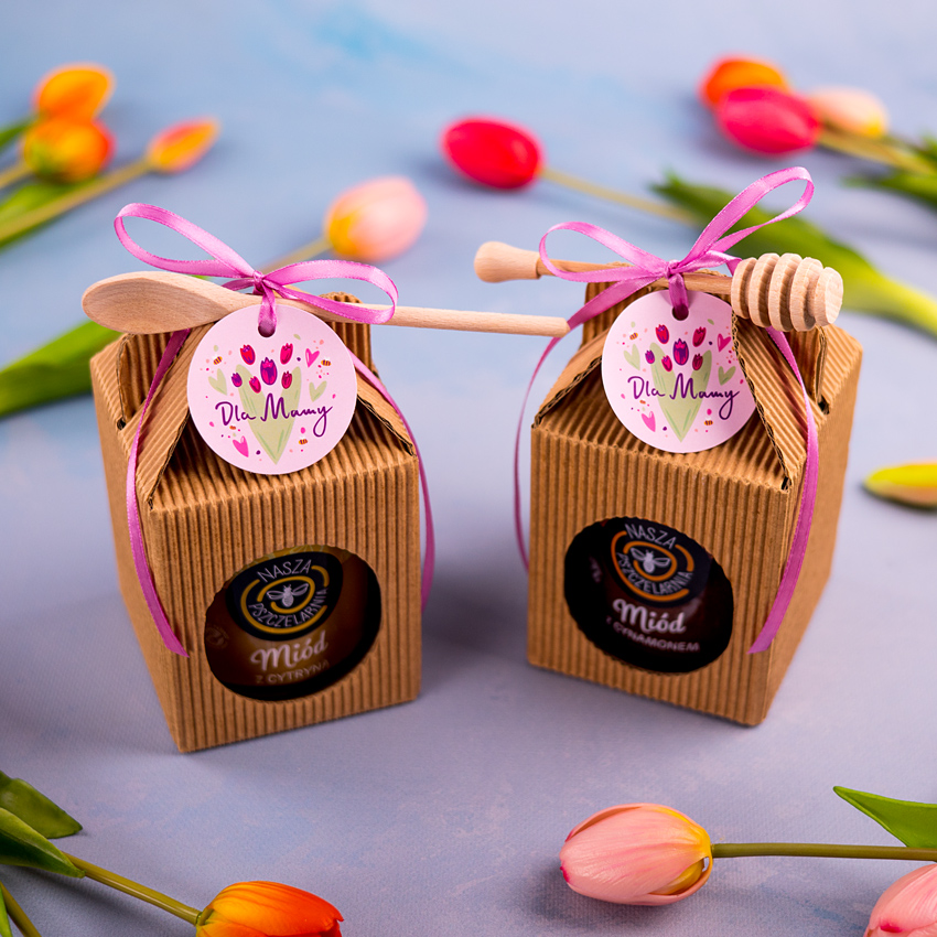 W tym eleganckim kartoniku z zawieszką okolicznościową znajdziesz idealny upominek na Dzień Matki. Wybierz 1 smak miodu dla obdarowywanej osoby, niech poczuje się naprawdę słodko!
