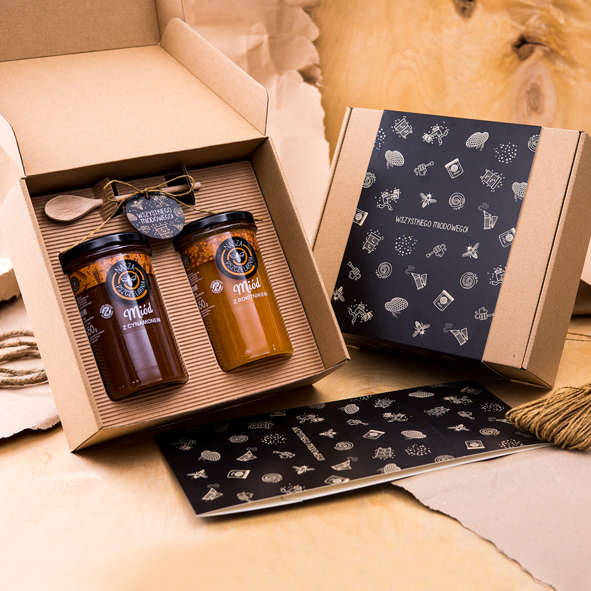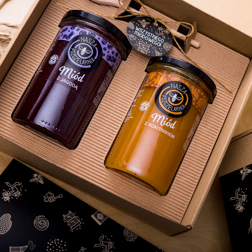 - Pudełko kartonowe na wybrane 2 miody 650g