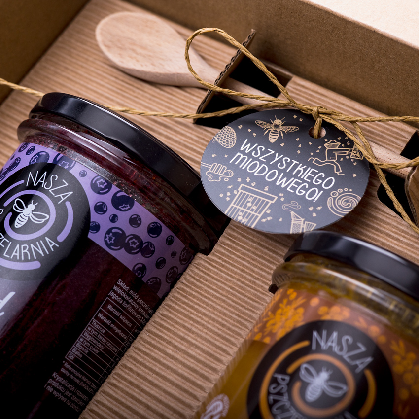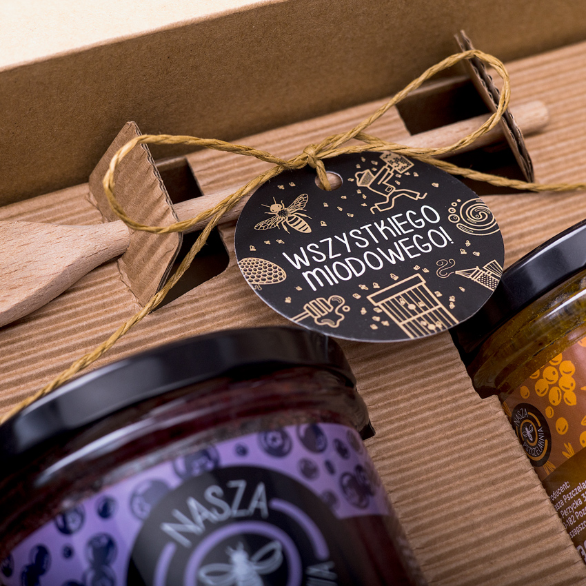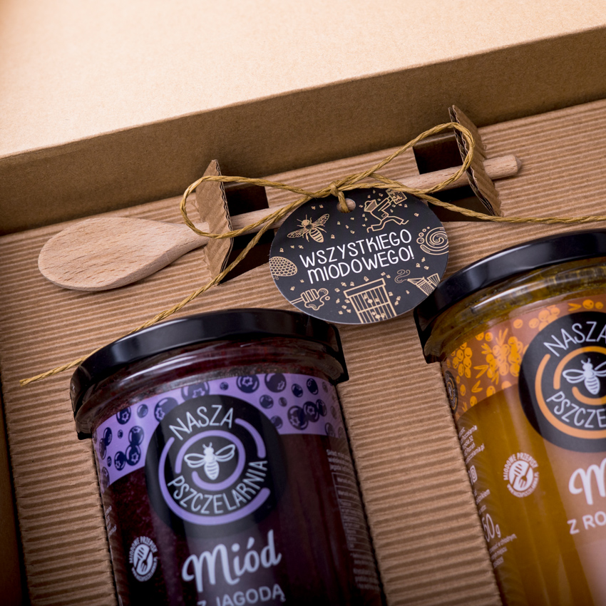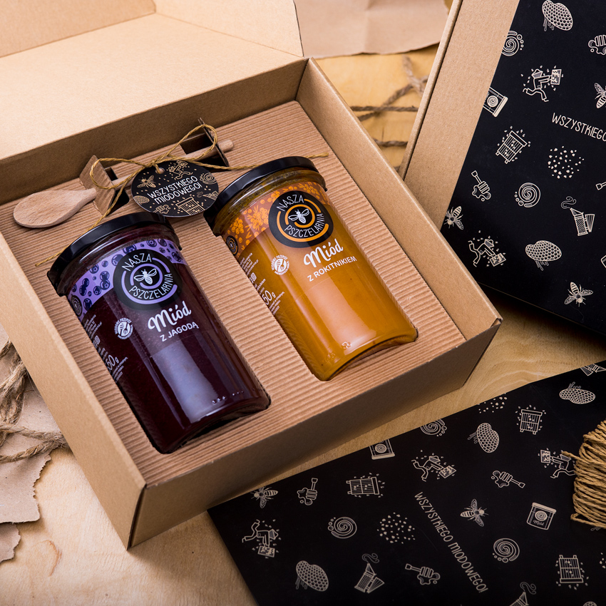 W tym eleganckim pudełku w opasce okolicznościowej znajdziesz idealny upominek na każdą okazję. Wybierz jedną z pięciu zawieszek. Skompletuj 2 smaki miodu dla obdarowywanej osoby, niech poczuje się naprawdę słodko!