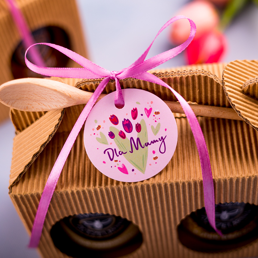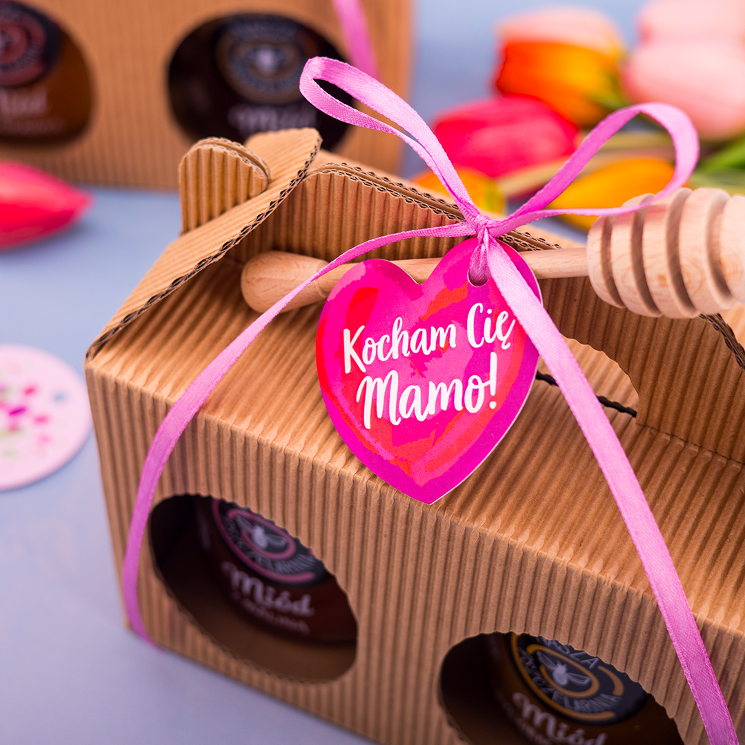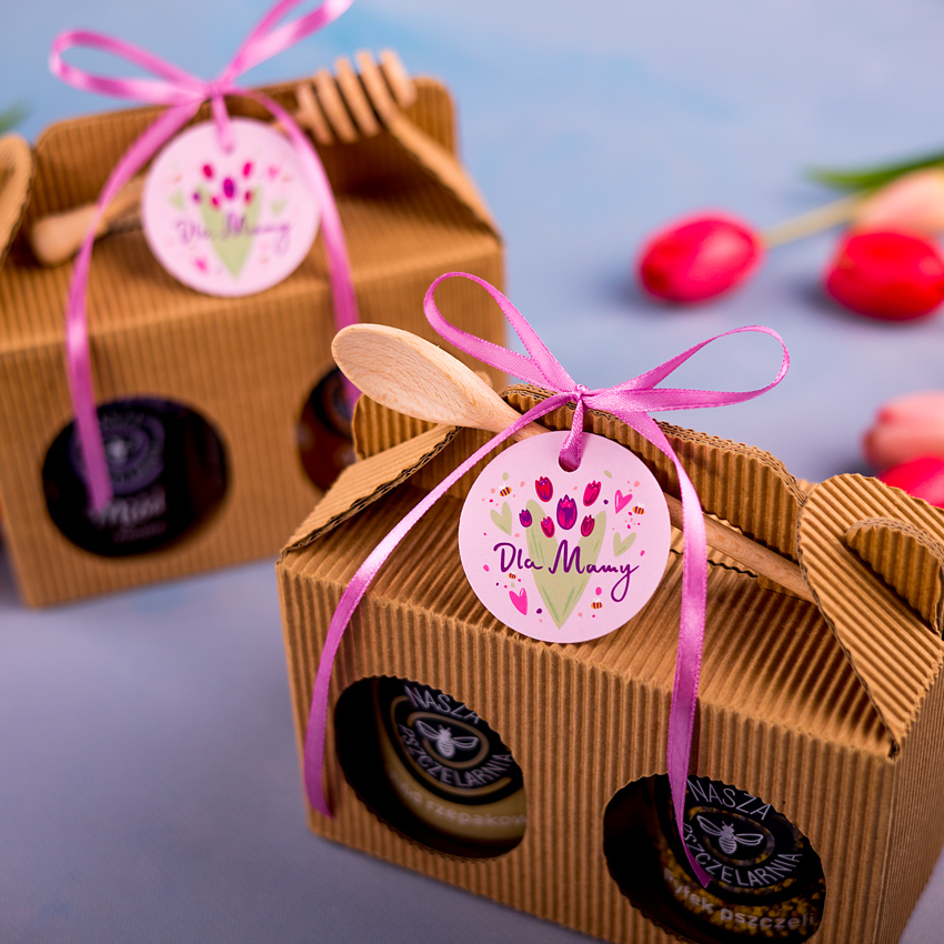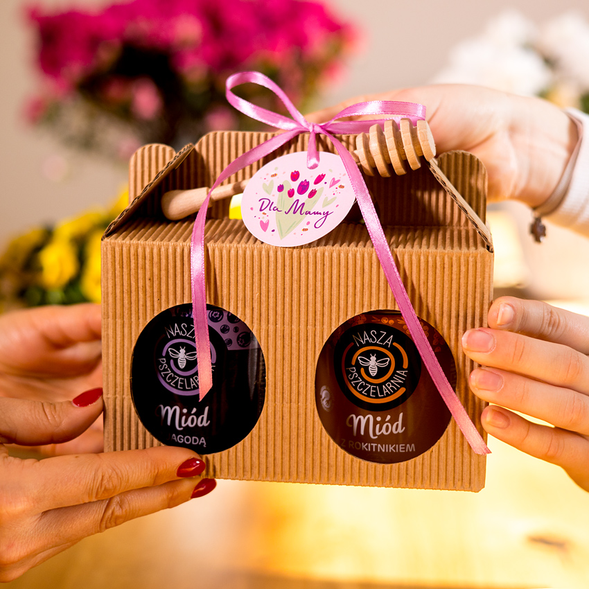 W tym eleganckim kartoniku z zawieszką okolicznościową do wyboru znajdziesz idealny upominek na Dzień Matki. Wybierz 2 smaki miodu dla obdarowywanej osoby, niech poczuje się naprawdę słodko!