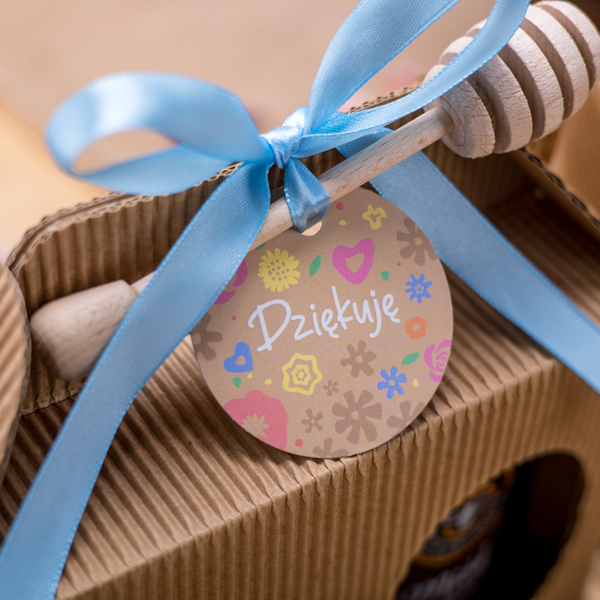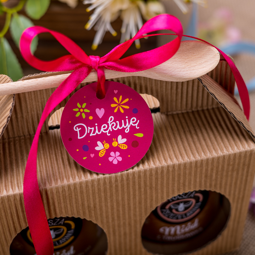 W tym eleganckim kartoniku z zawieszką okolicznościową w 3 kolorach do wyboru znajdziesz idealny upominek na Dzień Kobiet. Wybierz 2 smaki miodu dla obdarowywanej osoby, niech poczuje się naprawdę słodko!