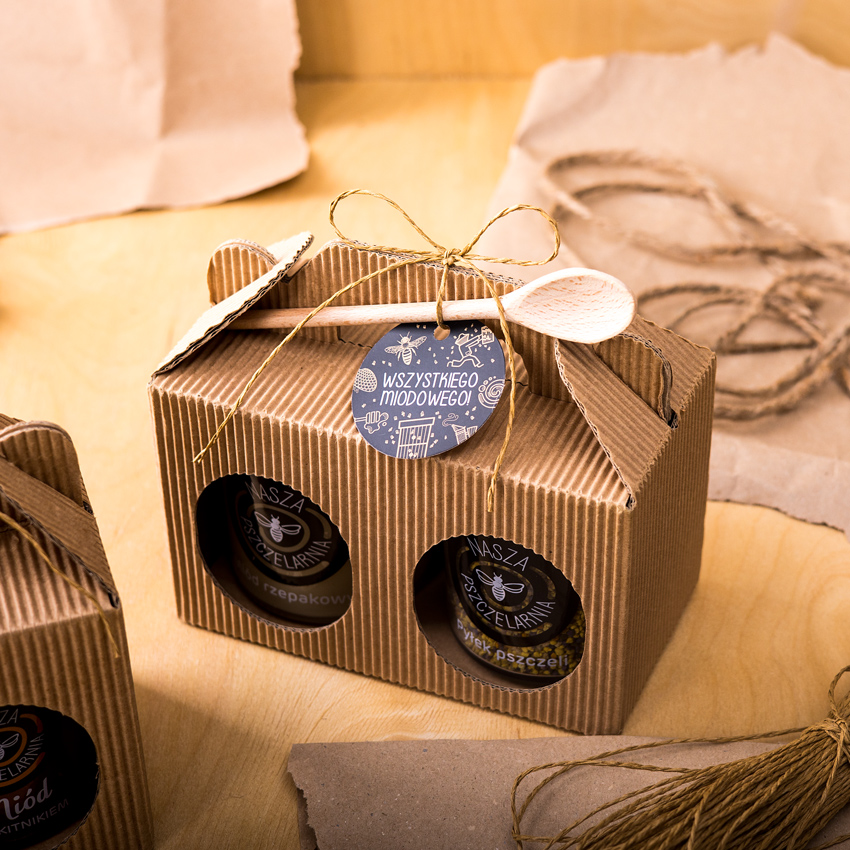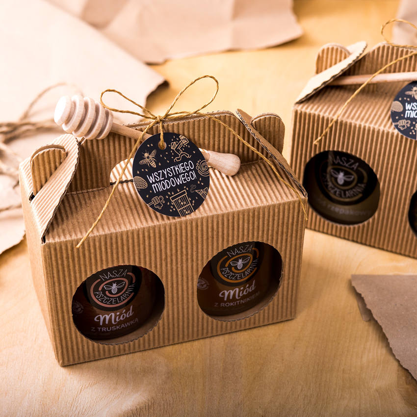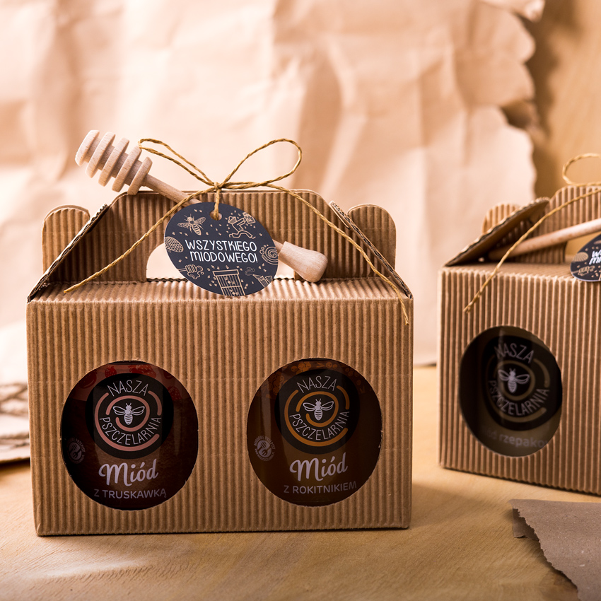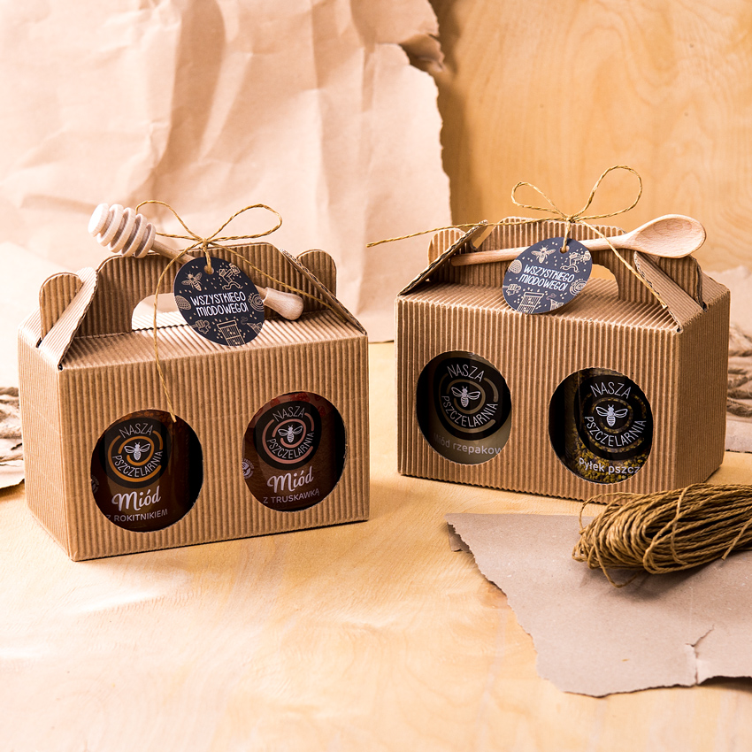 W tym eleganckim kartoniku z zawieszką okolicznościową znajdziesz idealny upominek na każdą okazję. Wybierz 2 smaki miodu dla obdarowywanej osoby, niech poczuje się naprawdę słodko!