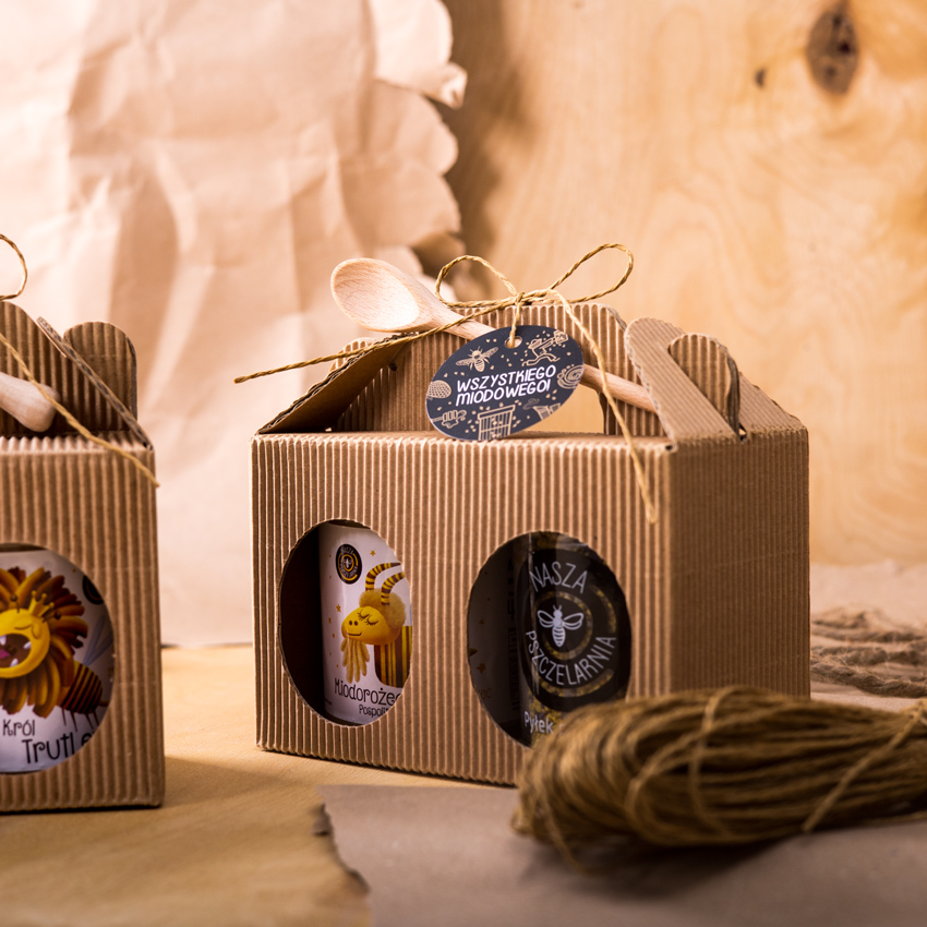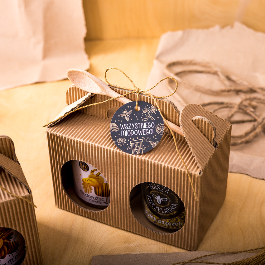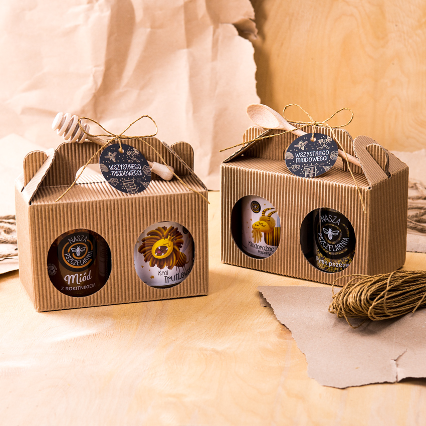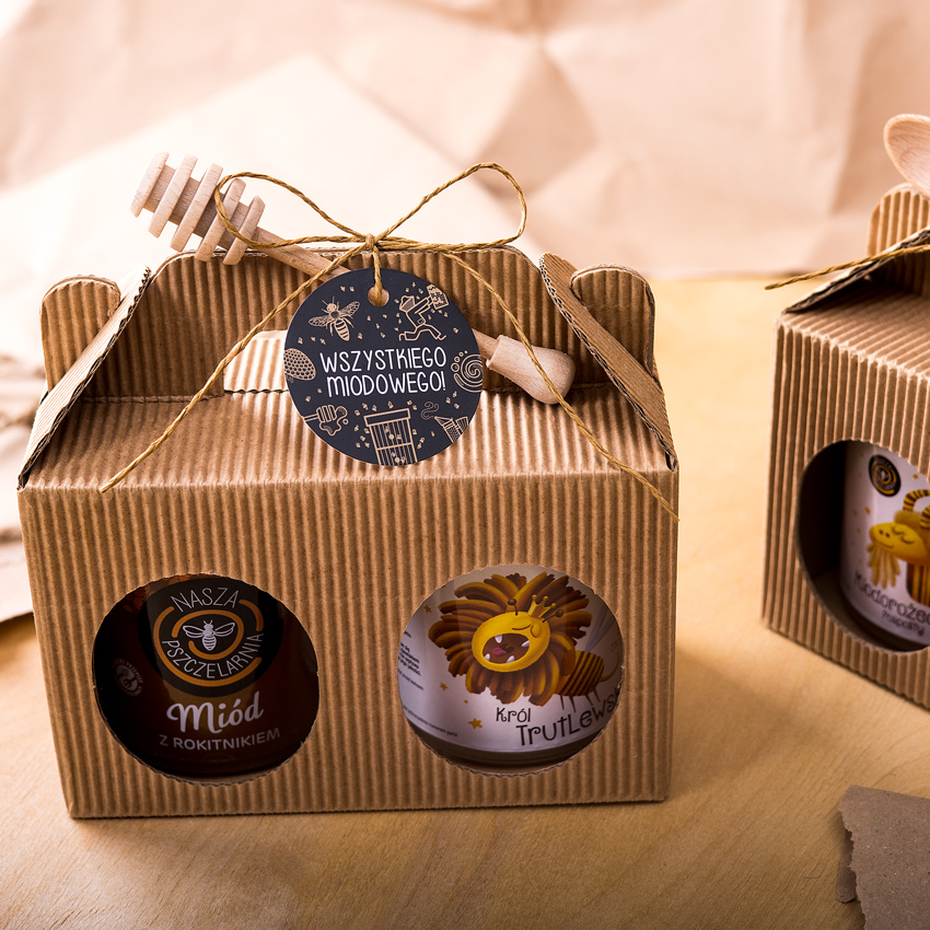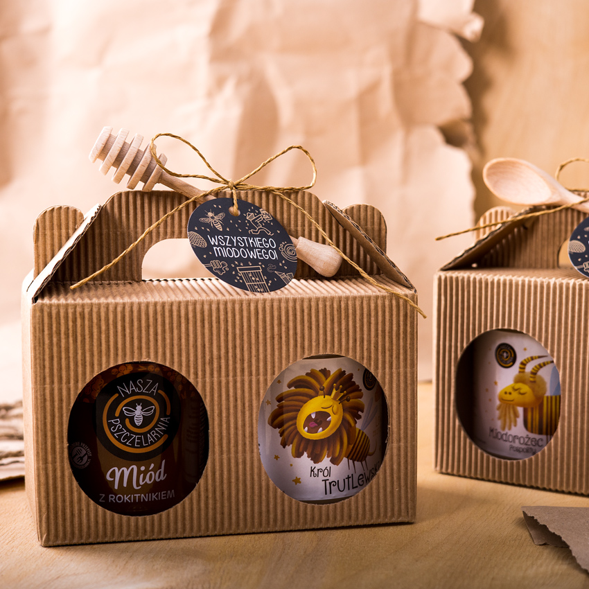 - Kartonik na 2 wybrane miody. Miód wielokwiatowy z wybranym znakiem zodiaku (450g) i wybrany miód tradycyjny lub smakowy (420g/450g)
