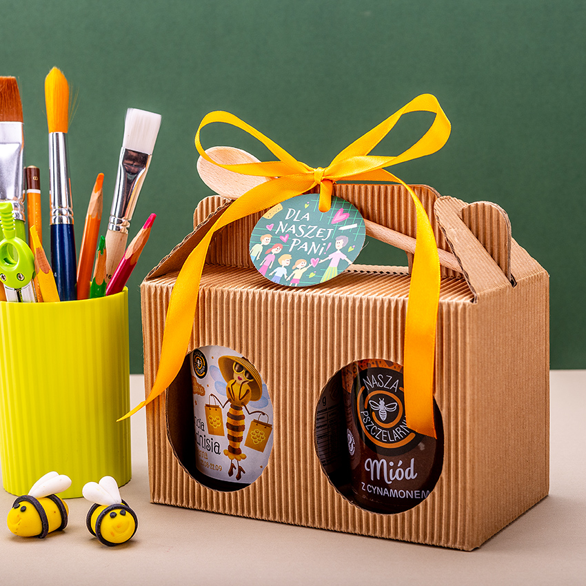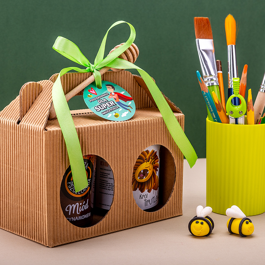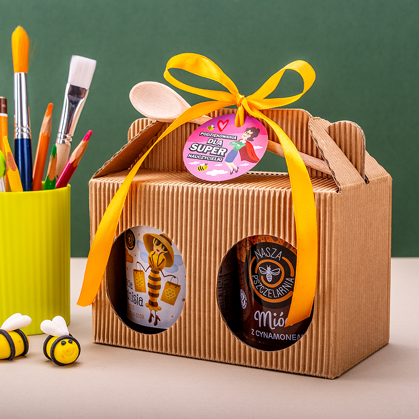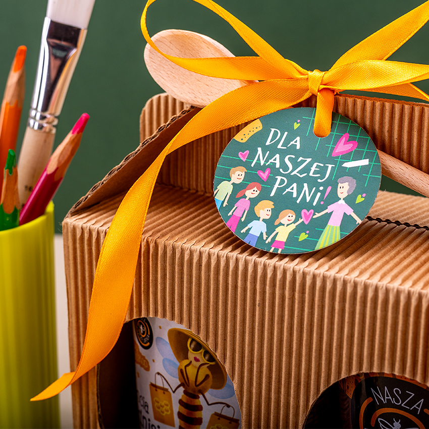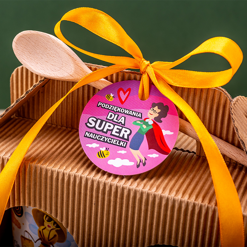 W tym eleganckim kartoniku z zawieszką okolicznościową znajdziesz idealny upominek dla Pani nauczycielki lub Pana nauczyciela. Wybierz etykietę z jednym ze znaków zodiaku oraz smak drugiego miodu dla obdarowywanej osoby, niech poczuje się naprawdę słodko!