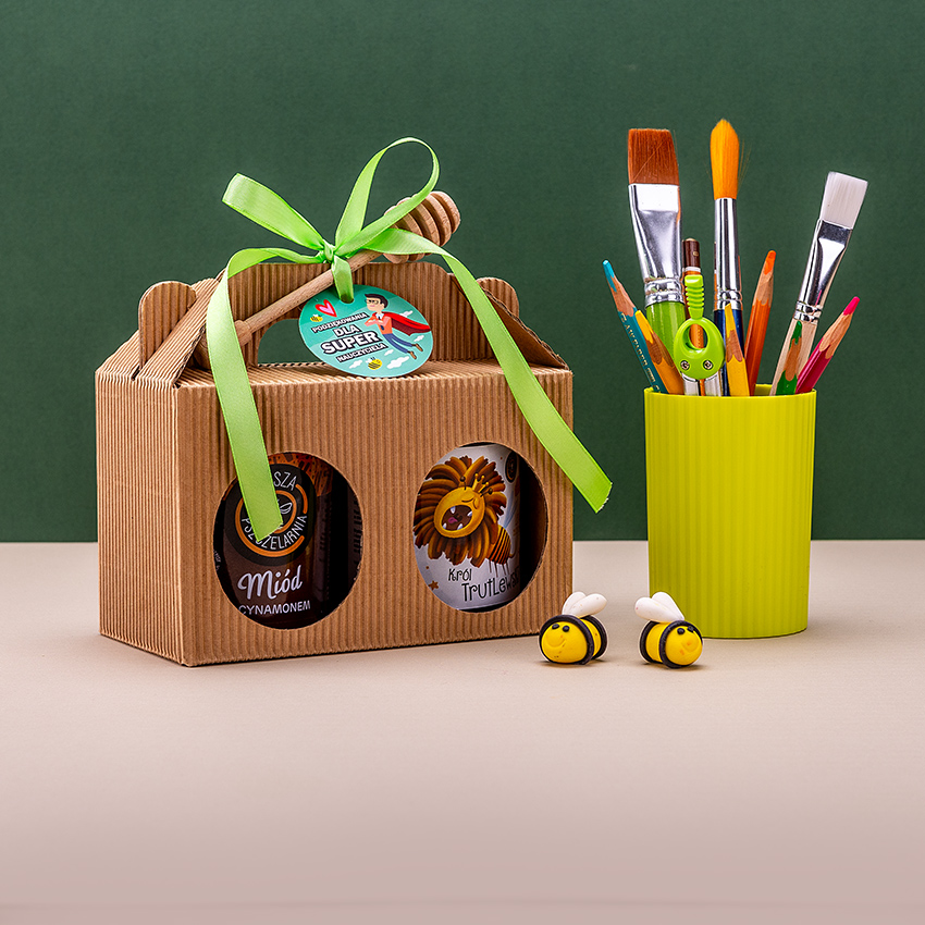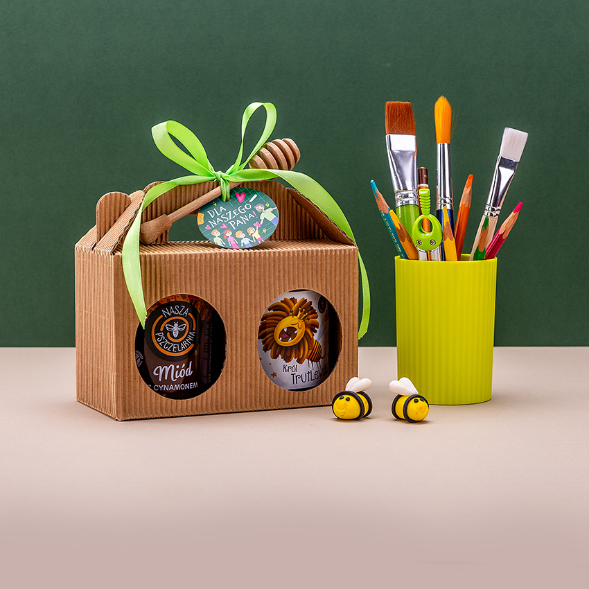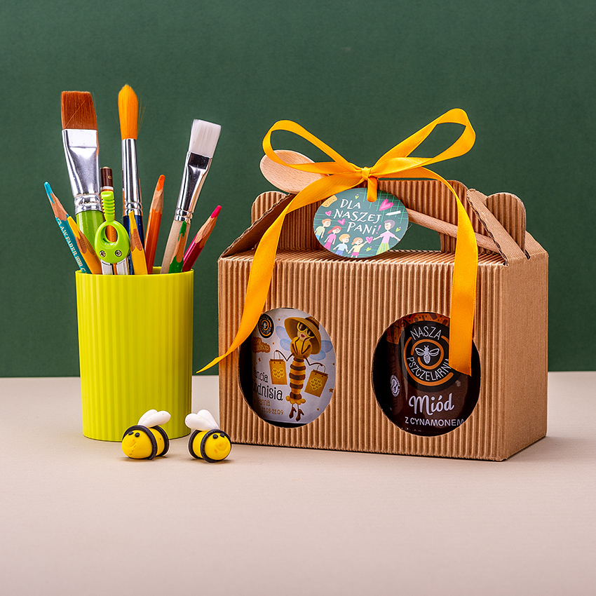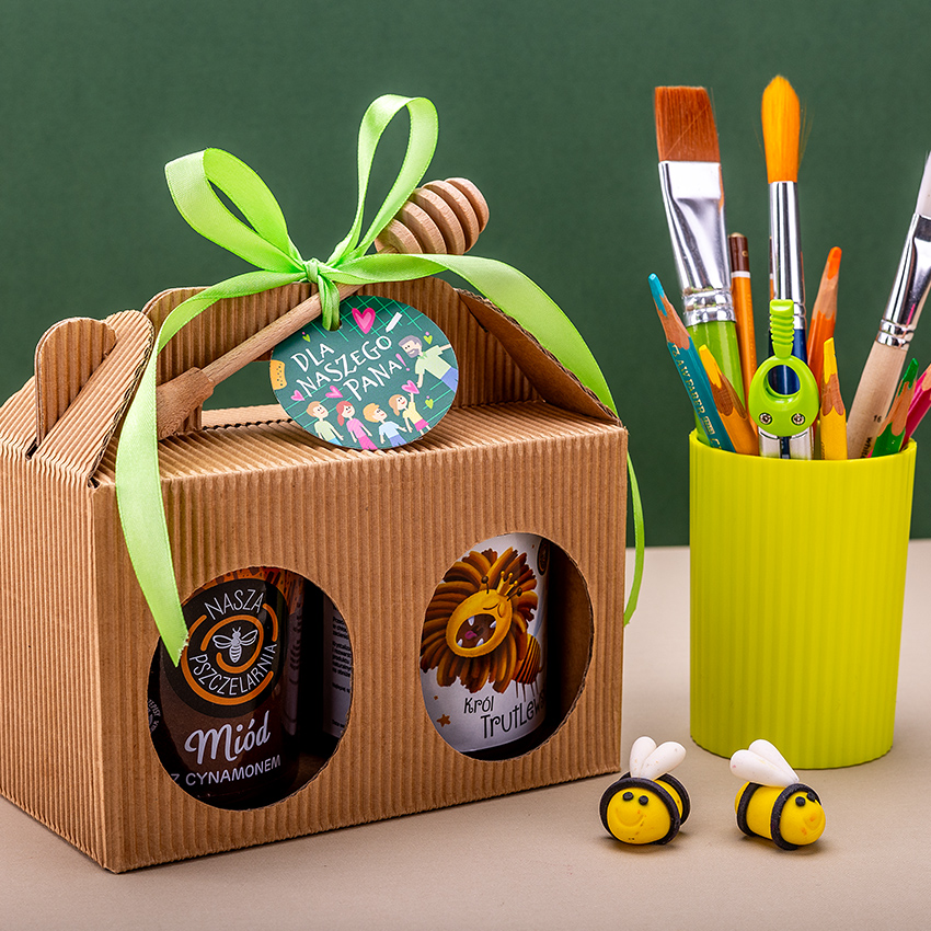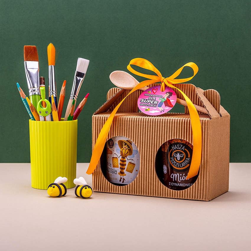 W tym eleganckim kartoniku z zawieszką okolicznościową znajdziesz idealny upominek dla Pani nauczycielki lub Pana nauczyciela. Wybierz etykietę z jednym ze znaków zodiaku oraz smak drugiego miodu dla obdarowywanej osoby, niech poczuje się naprawdę słodko!