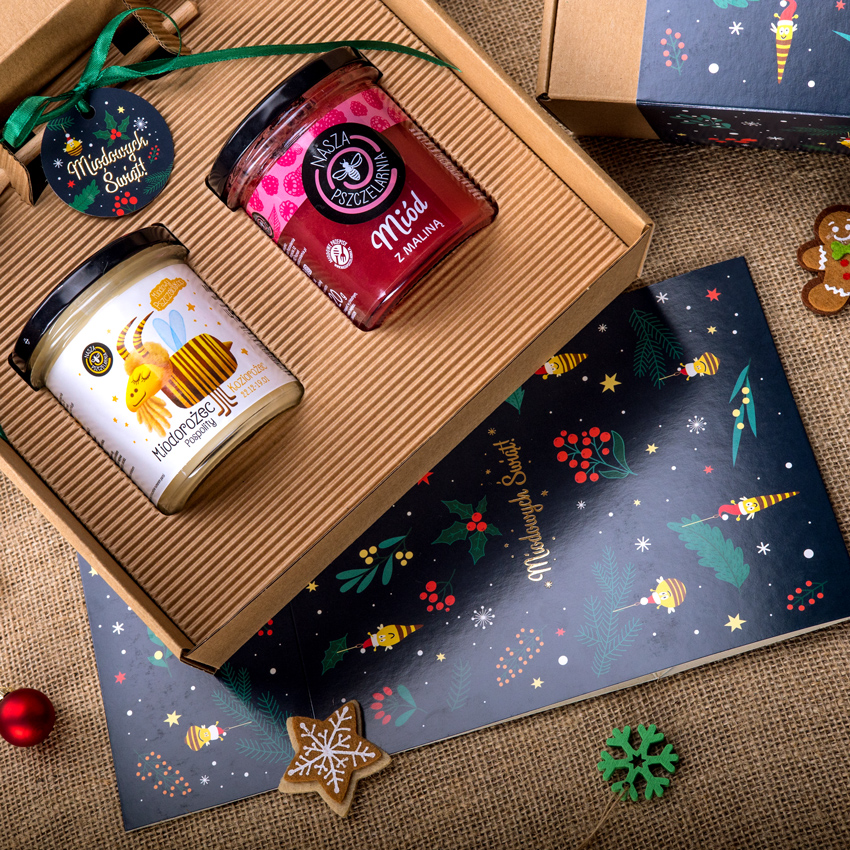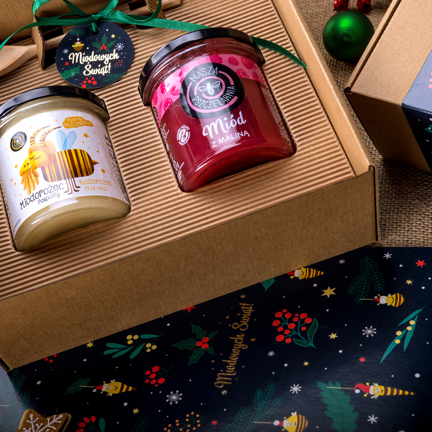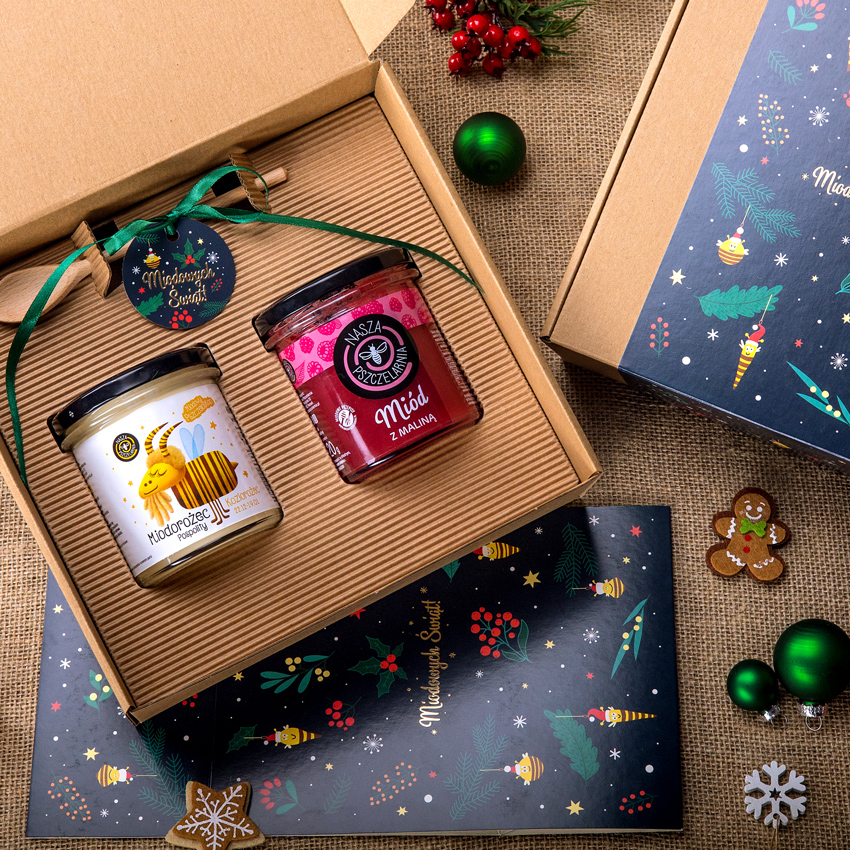 W tym eleganckim pudełku w opasce okolicznościowej znajdziesz idealny upominek na zbliżające się święta Bożego Narodzenia. Wybierz etykietę z jednym ze znaków zodiaku oraz smak drugiego miodu dla obdarowywanej osoby, niech poczuje się naprawdę słodko!