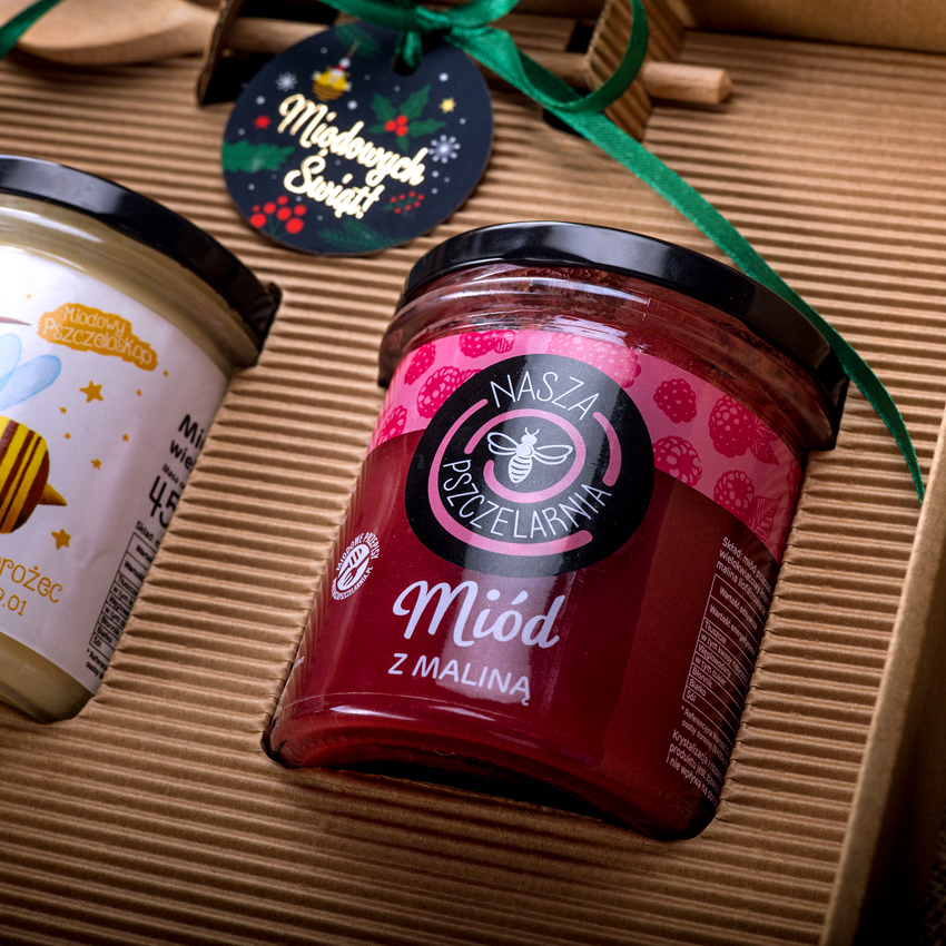 - Pudełko kartonowe na wybrane 2 miody 420g/450g