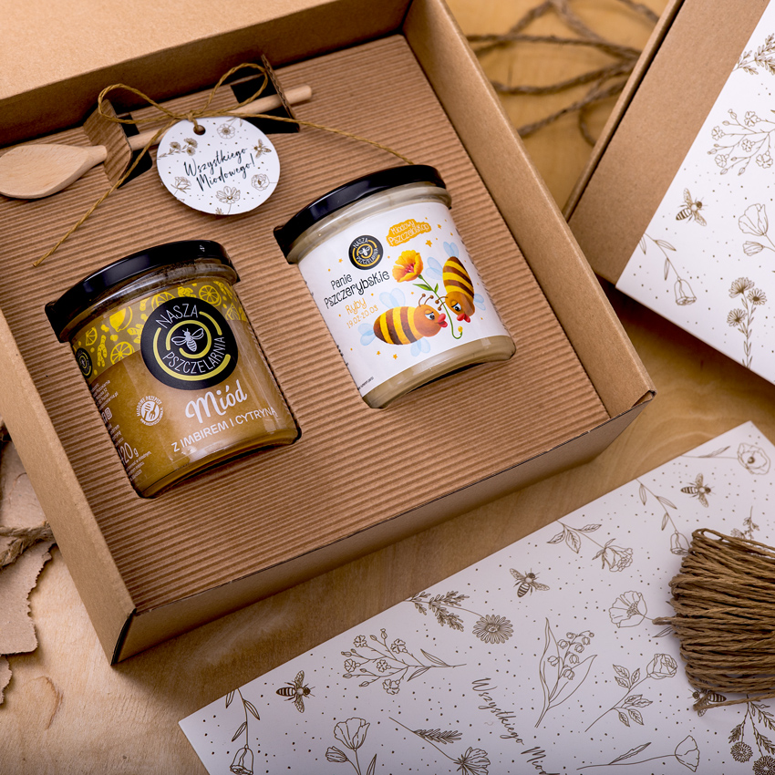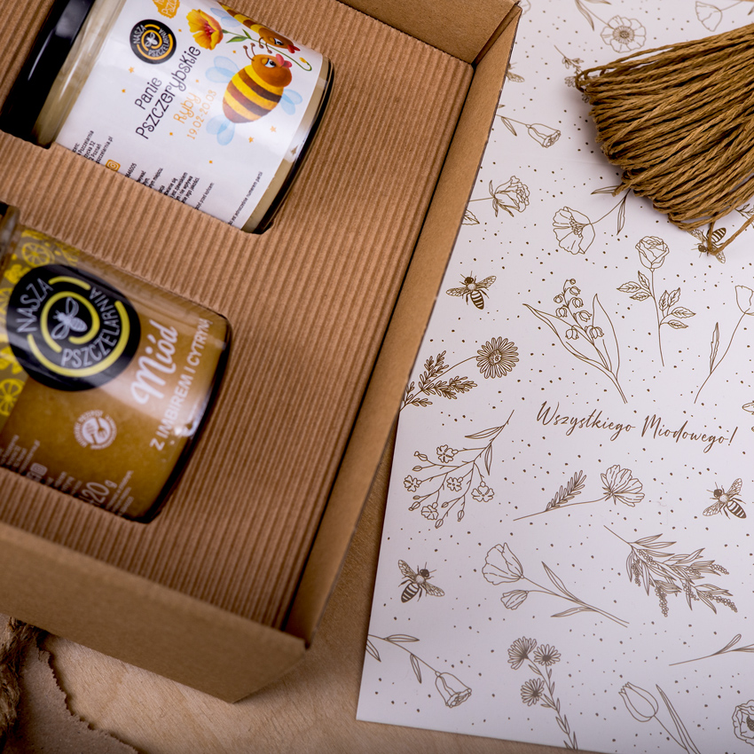 • Pudełko kartonowe na wybrane 2 miody 420g/450g