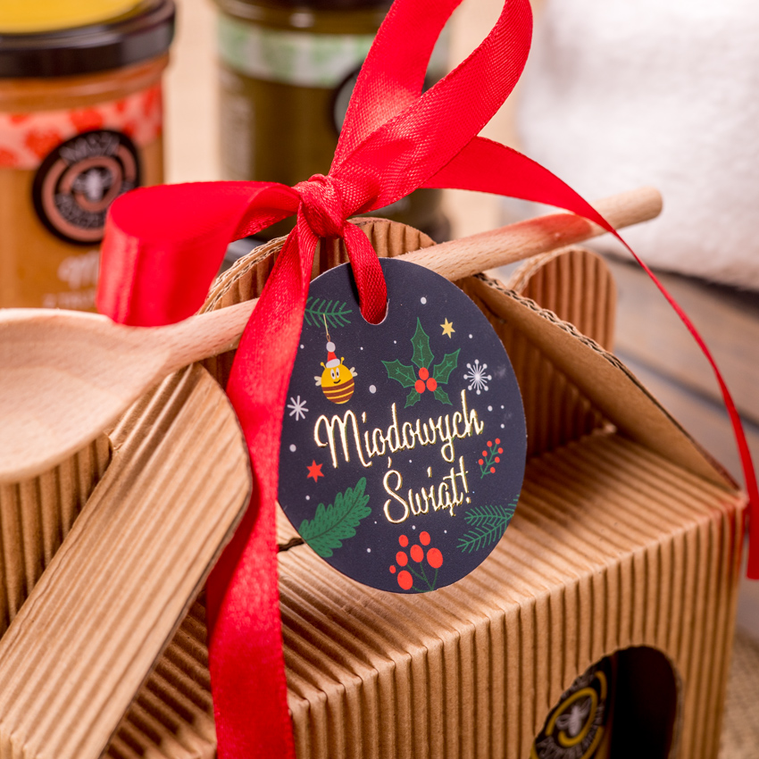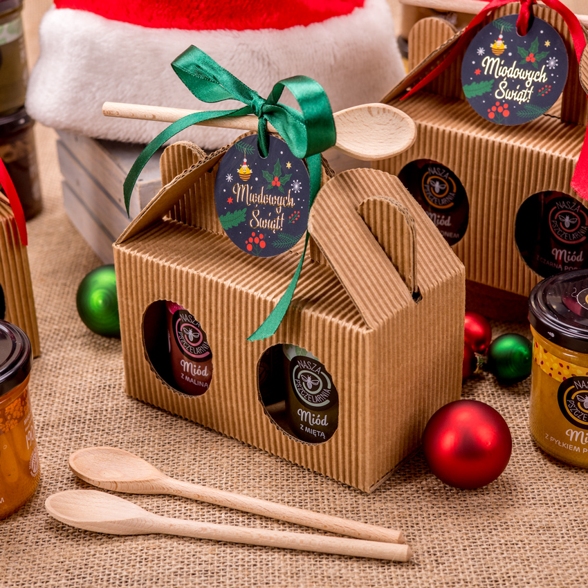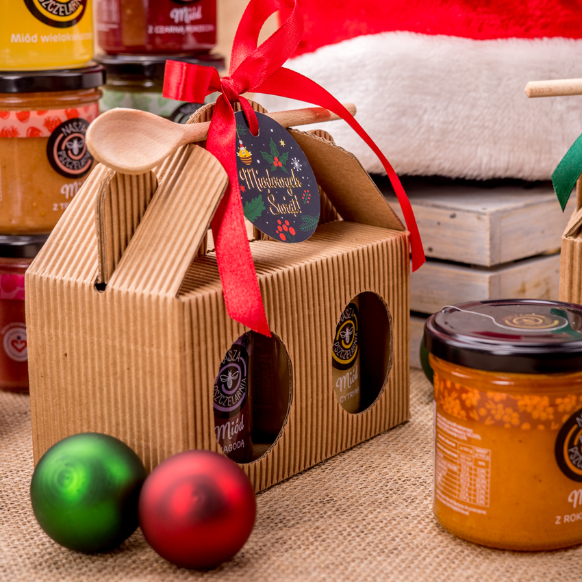 W tym eleganckim kartoniku z zawieszką okolicznościową znajdziesz idealny upominek na zbliżające się święta Bożego Narodzenia. Wybierz 2 smaki miodu dla obdarowywanej osoby, niech poczuje się naprawdę słodko!