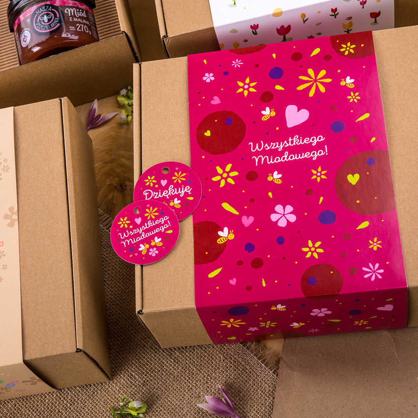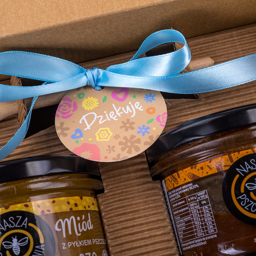 - Pudełko kartonowe na 4 wybrane miody 300g/270g
