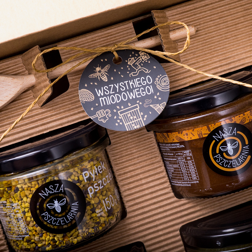W tym eleganckim pudełku w opasce okolicznościowej znajdziesz idealny upominek na każdą okazję. Wybierz jedną z pięciu zawieszek. Skompletuj 4 smaki miodu dla obdarowywanej osoby, niech poczuje się naprawdę słodko!