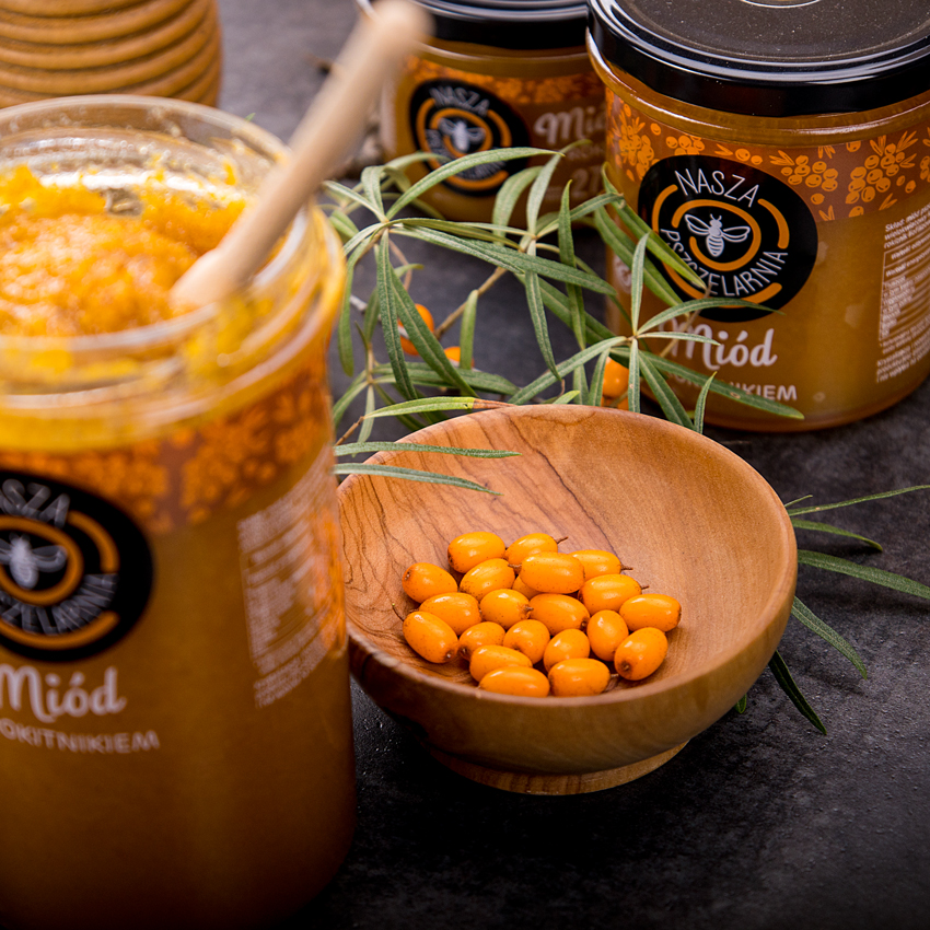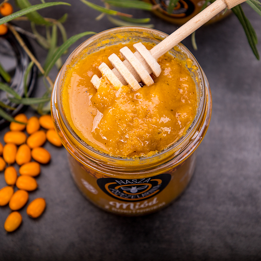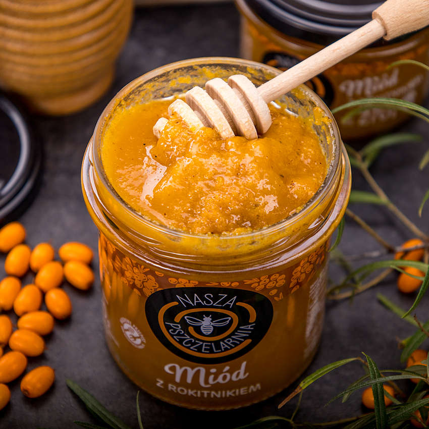 Miód z rokitnikiem w słoiku 420 g to połączenie słodkiego smaku miodu wielokwiatowego i wyjątkowych właściwości rokitnika. Razem tworzą niepowtarzalną mieszankę naturalnego panaceum na wiele dolegliwości.
