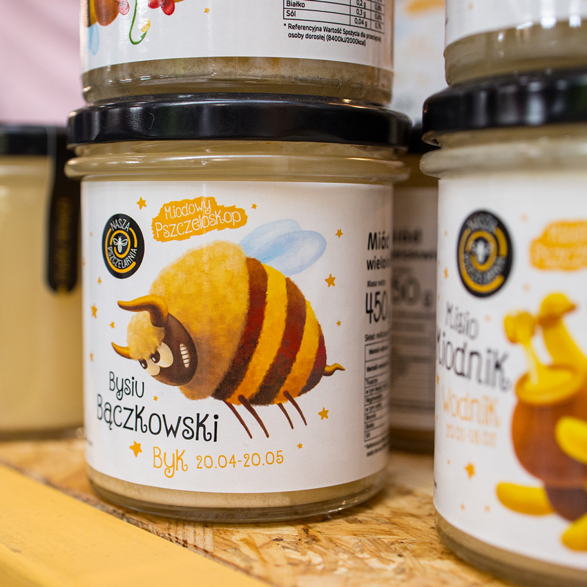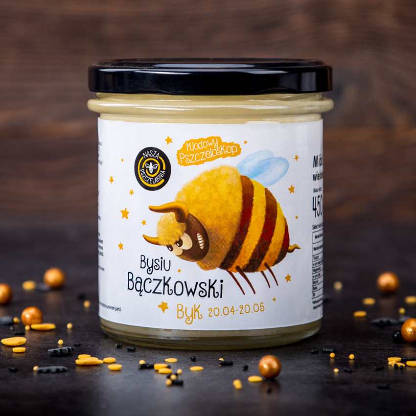 Bysie Bączkowskie, to pszczółki bardzo zdeterminowane, pracowite, cierpliwe, ale czasem bywają też uparte i krnąbrne. Jednak w ulu to bardzo pożądane cechy, które pomagają im realizować indywidualne ambicje w kontekście potrzeb pszczelej rodziny. W kontaktach z innym pszczołami dążą do budowania głębokiej i długotrwałej relacji. W środku słoika znajdziesz nasz w 100% naturalny miód wielokwiatowy (450g). Idealny prezent na urodziny lub inną okazję.