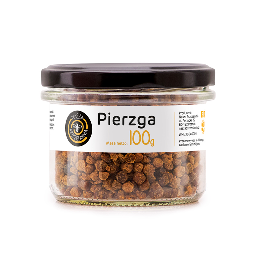 Wytwarzana przez pszczoły pierzga to mieszanka sfermentowanego pyłku kwiatowego, enzymów pszczelich i miodu. W jej składzie znajduje się kwas mlekowy. To w pełni naturalny produkt w postaci twardych granulek. W smaku jest słodka – podobnie jak miód. Pierzga pszczela jest bogatym źródłem witamin, ale ze względu na obecność pyłku kwiatowego w składzie może uczulać – zaleca się wykonanie próby alergicznej.